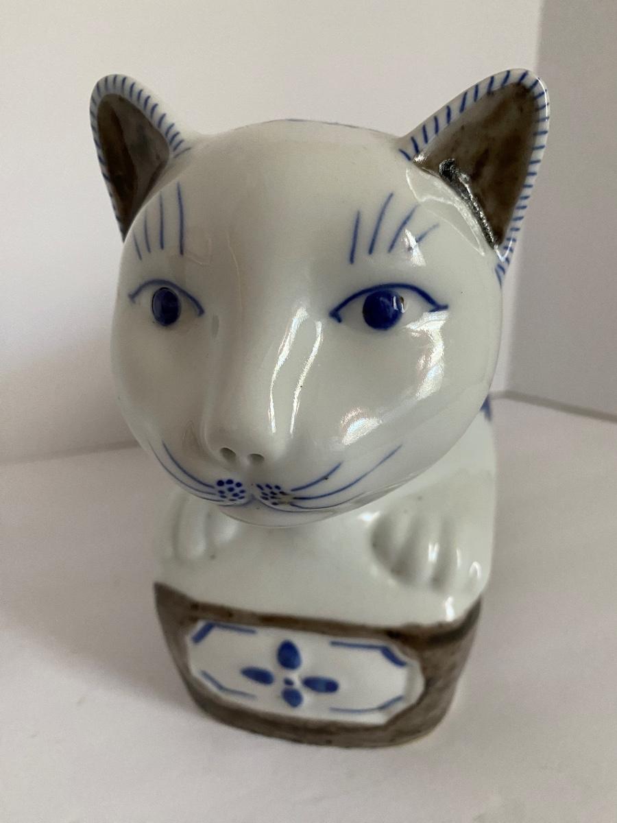 Chinese Porcelain Blue and White Recumbent Cat Pillow Statue