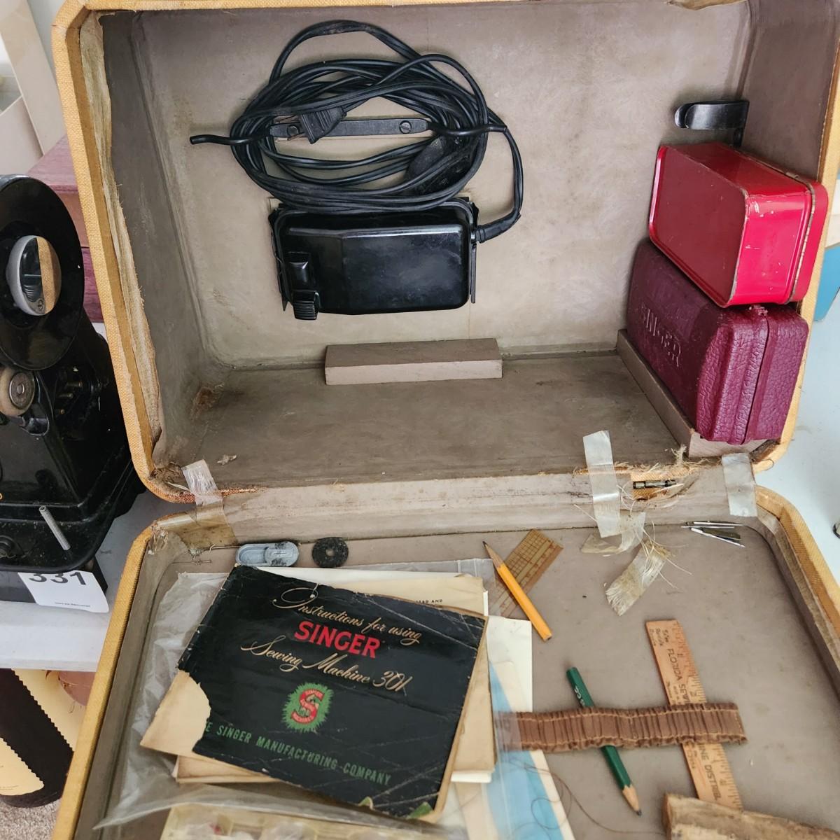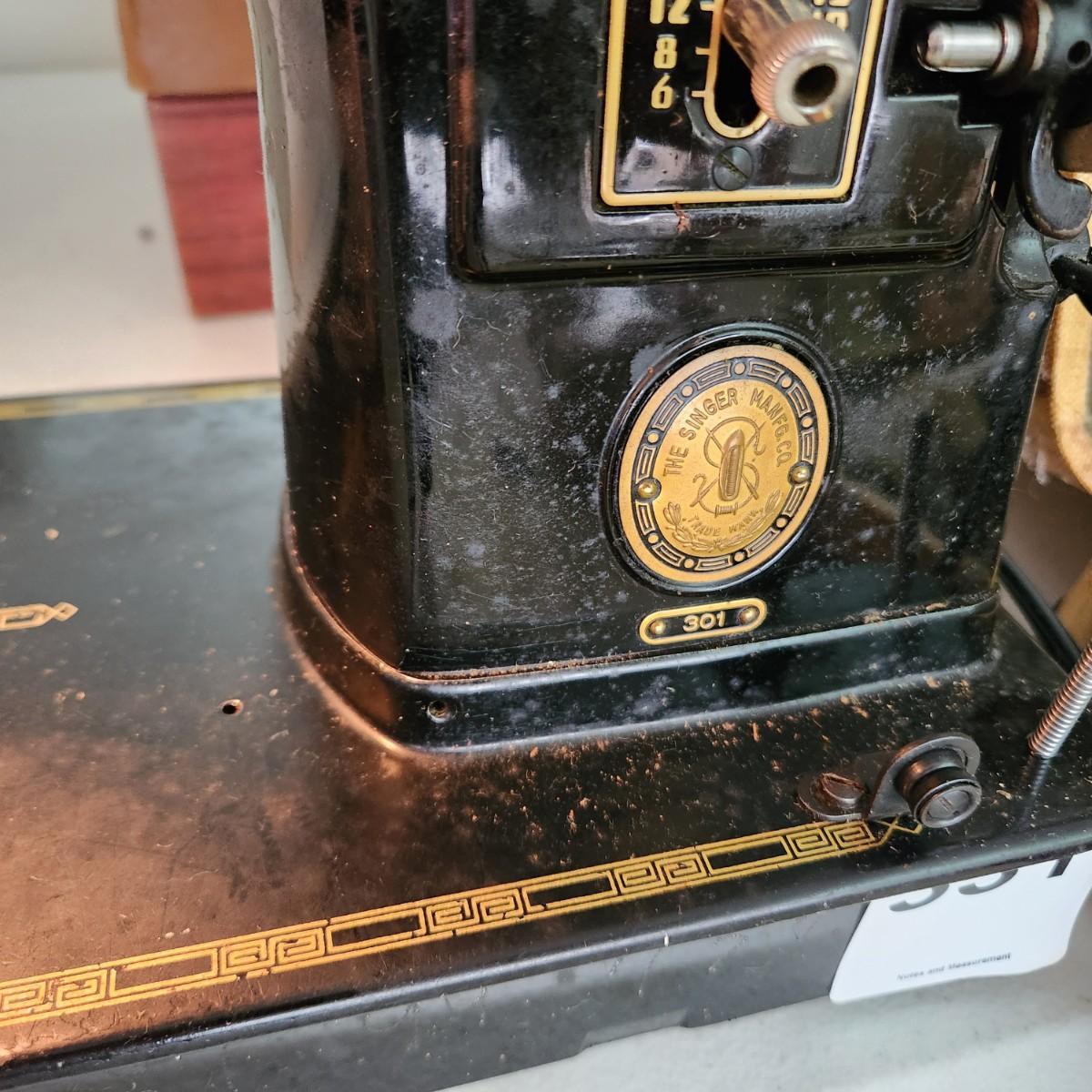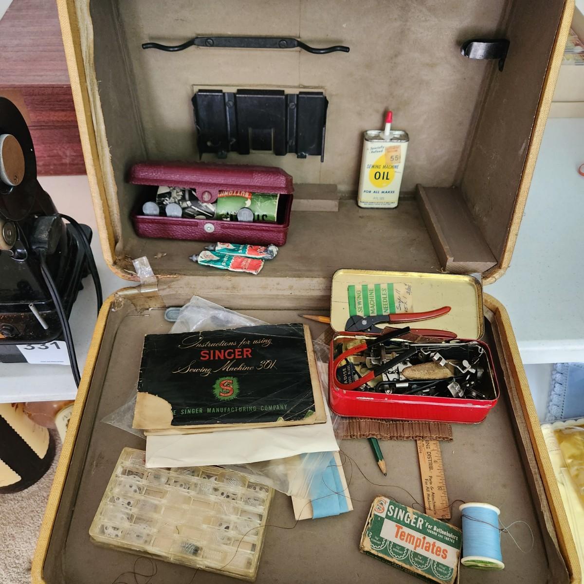 Vintage Portable Singer 301 Sewing Machine w Case & Accessories working