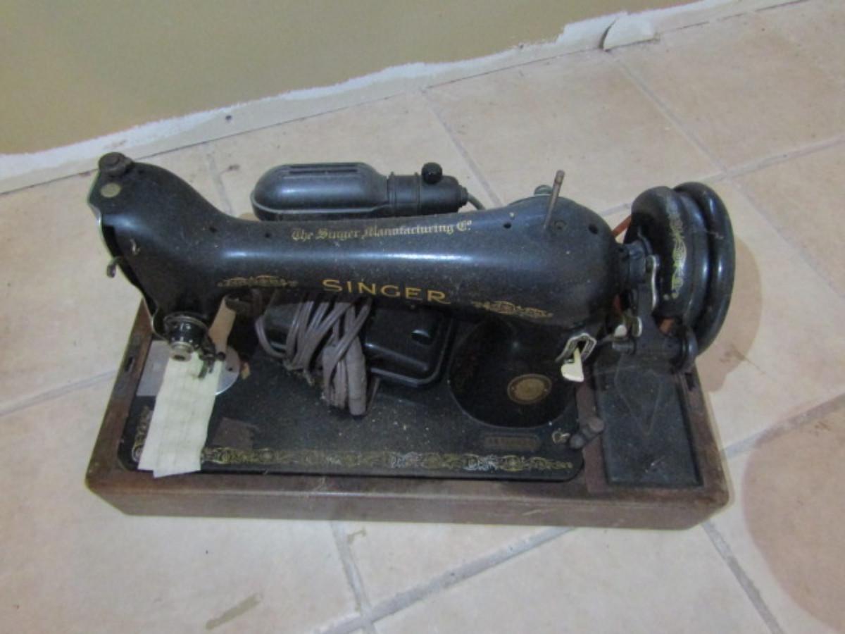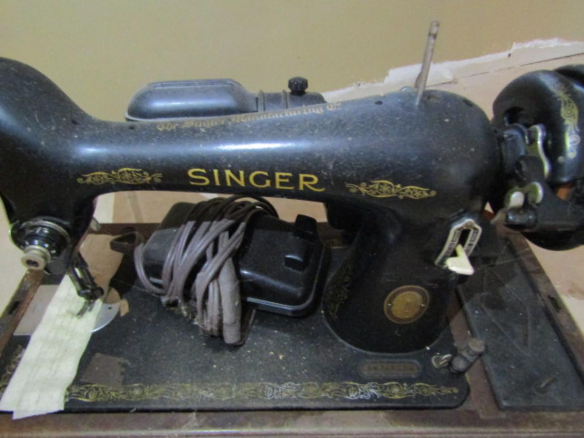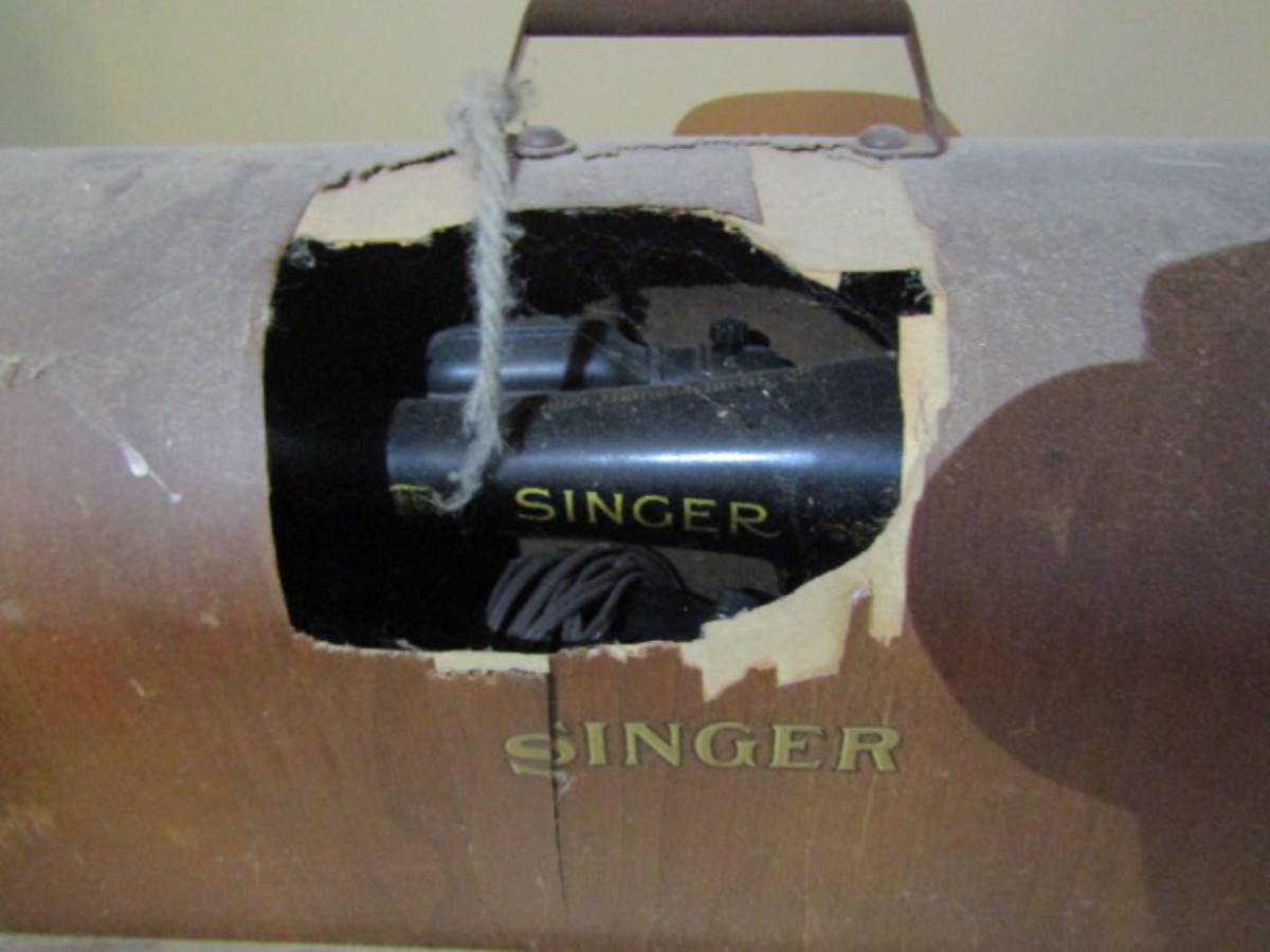 Vintage Portable Singer Sewing Machine- AK346126. In untested condition- damage to carrying case- please see all pictures.