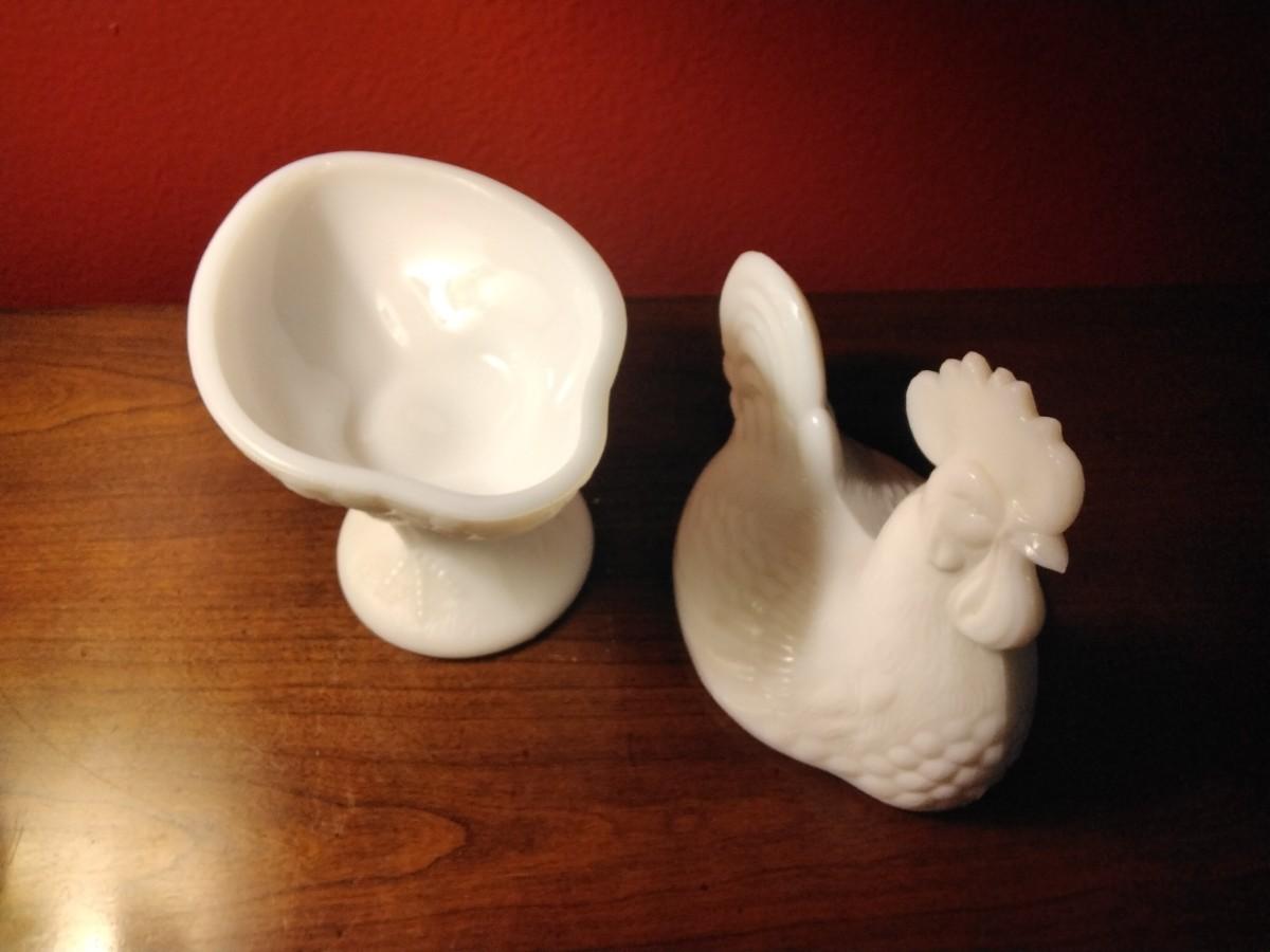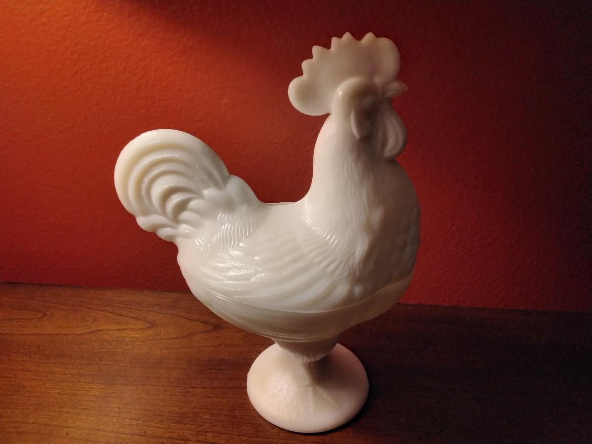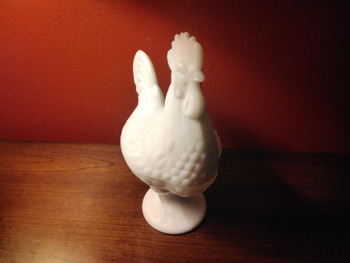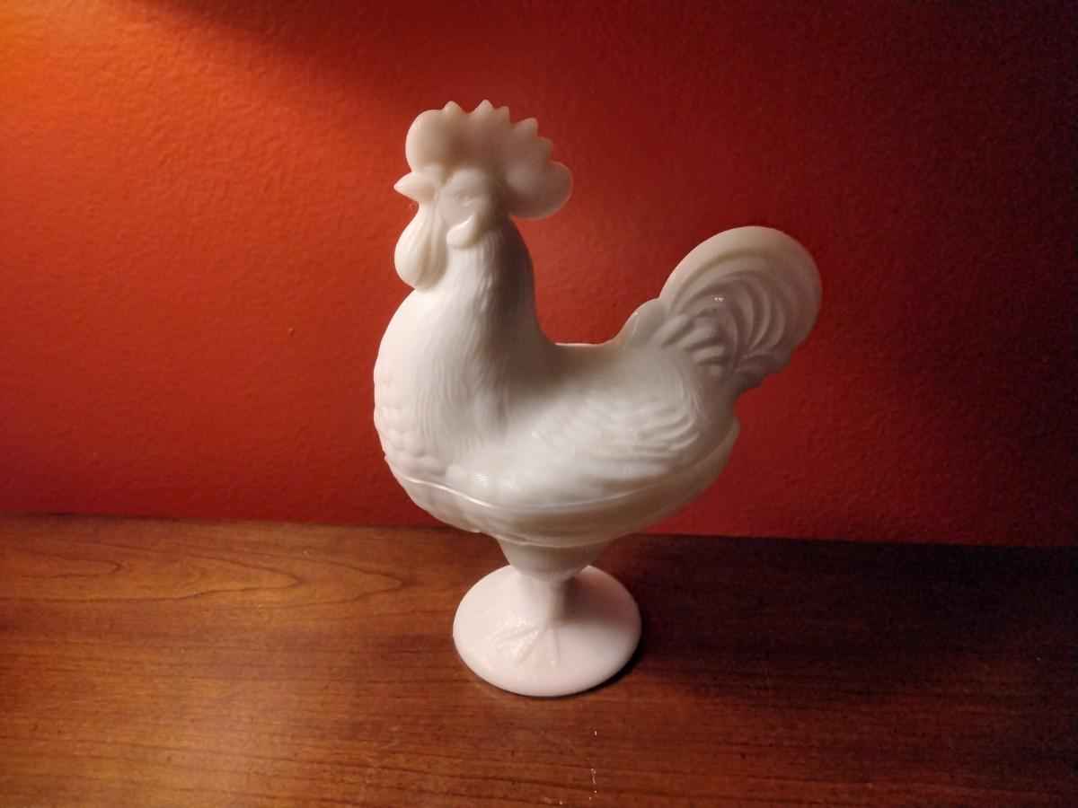 Vintage Portieux Vallerysthal Milk Glass Covered Dish Rooster