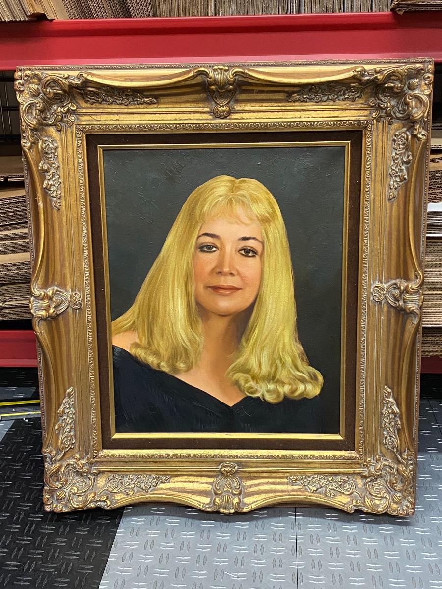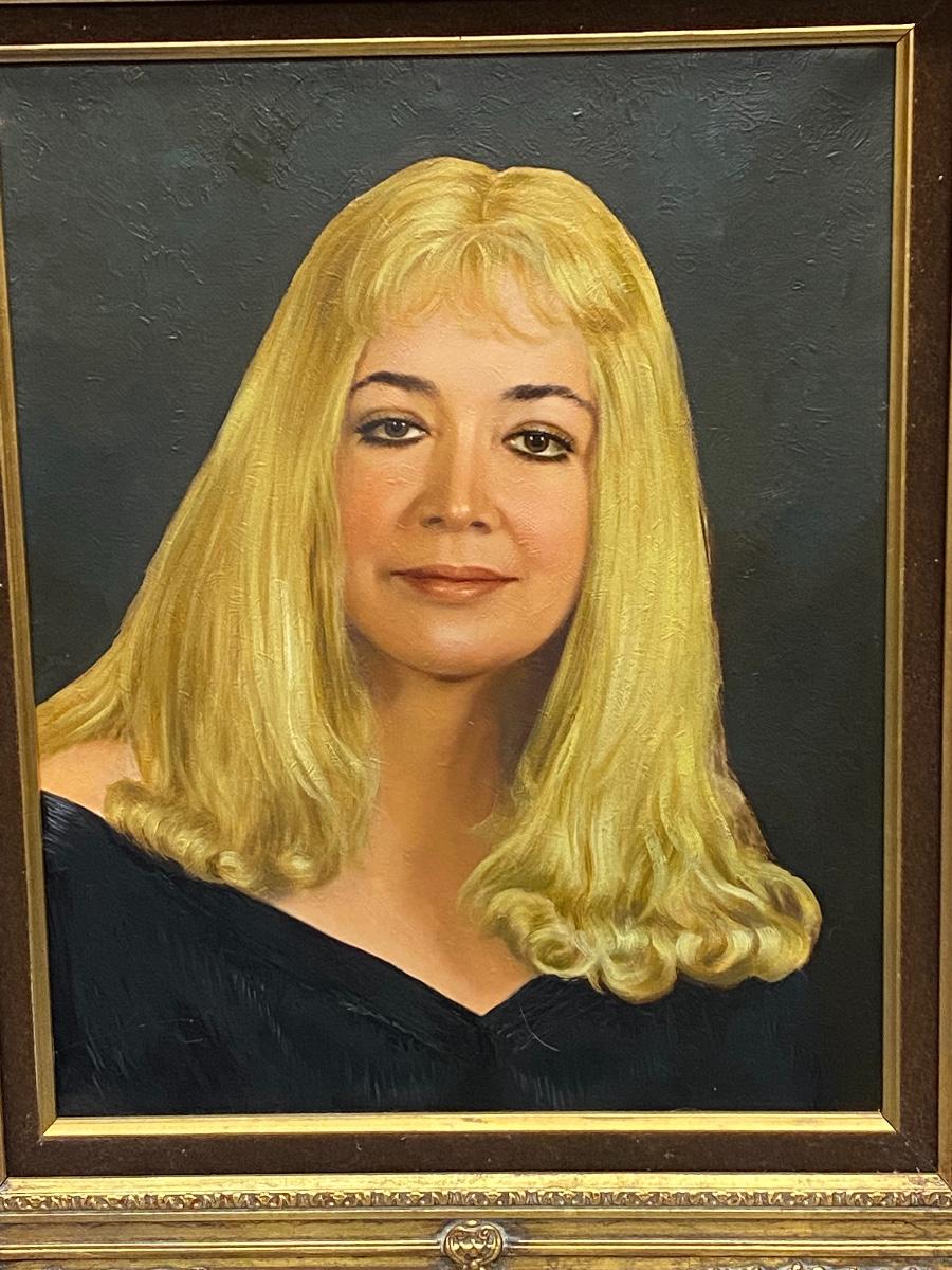 Large vintage portrait painting of a woman. Ornate frame. Measures about 26"x31".
