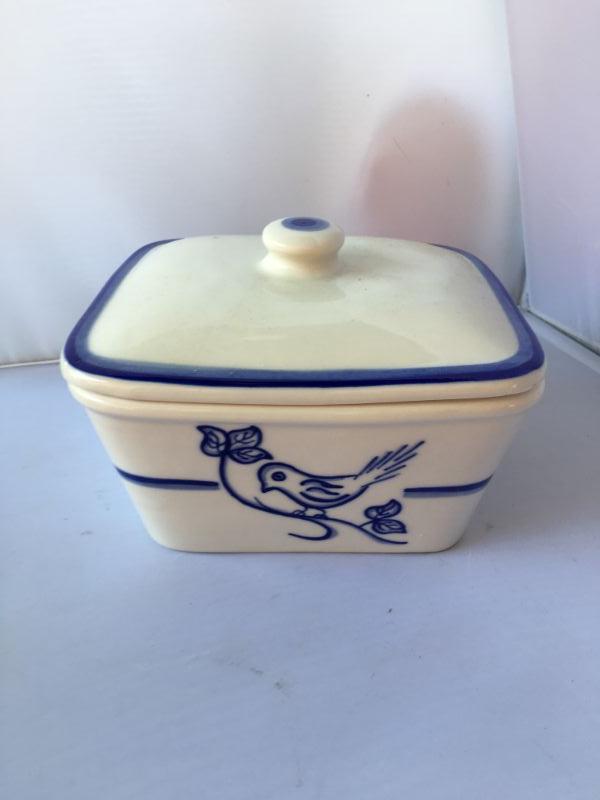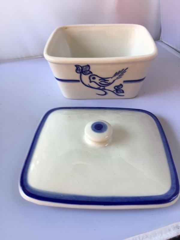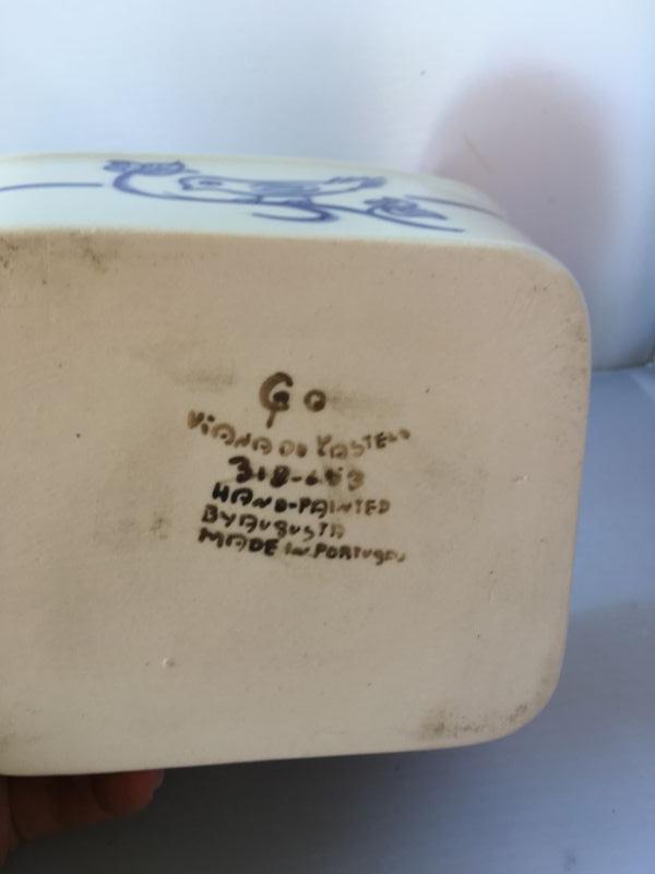 Vintage Portugal Hand Painted and Signed by the Artist Cheese Bowl with a Bird