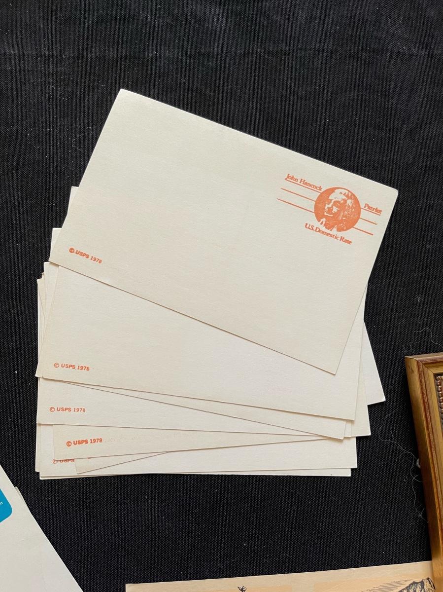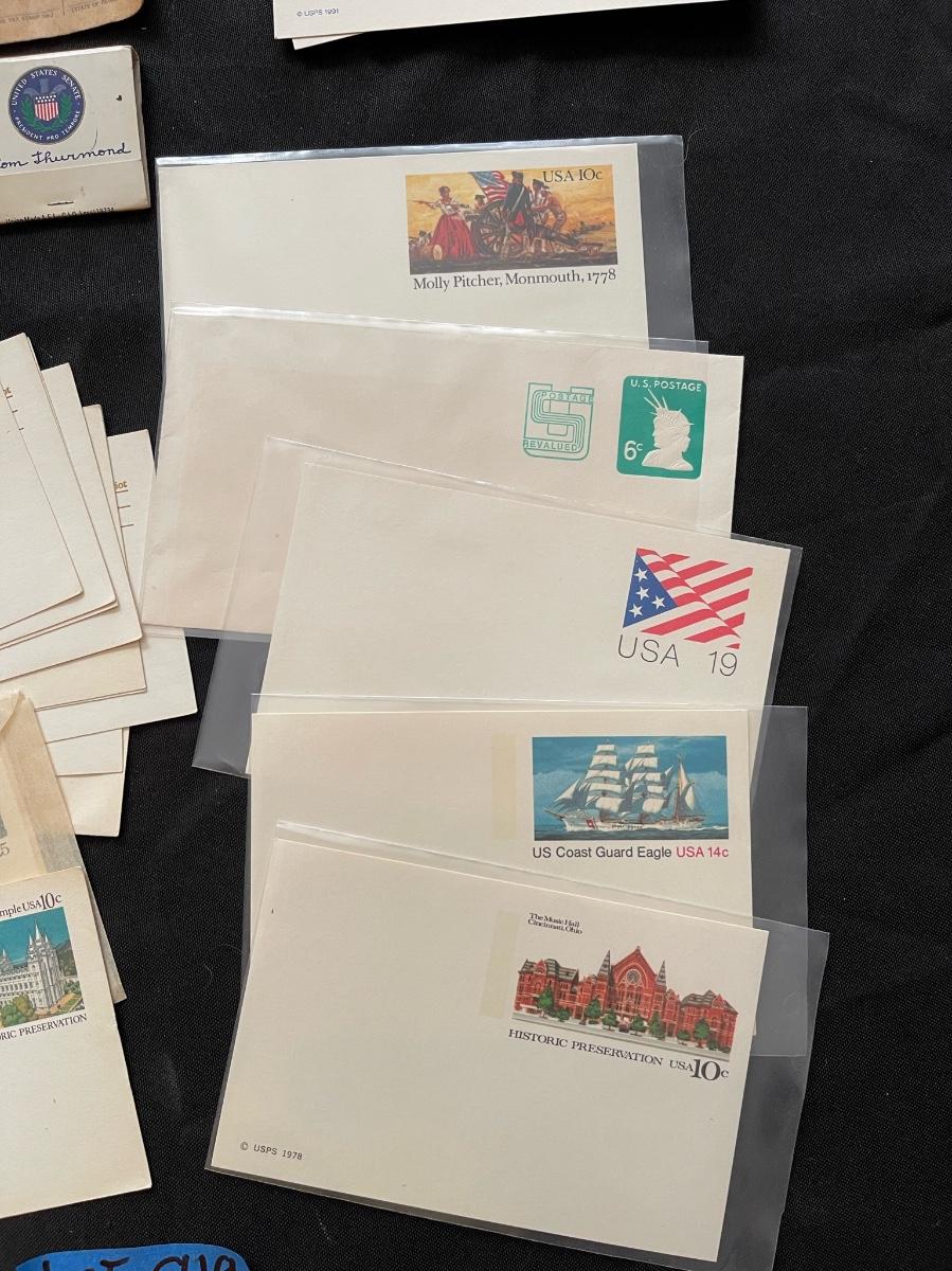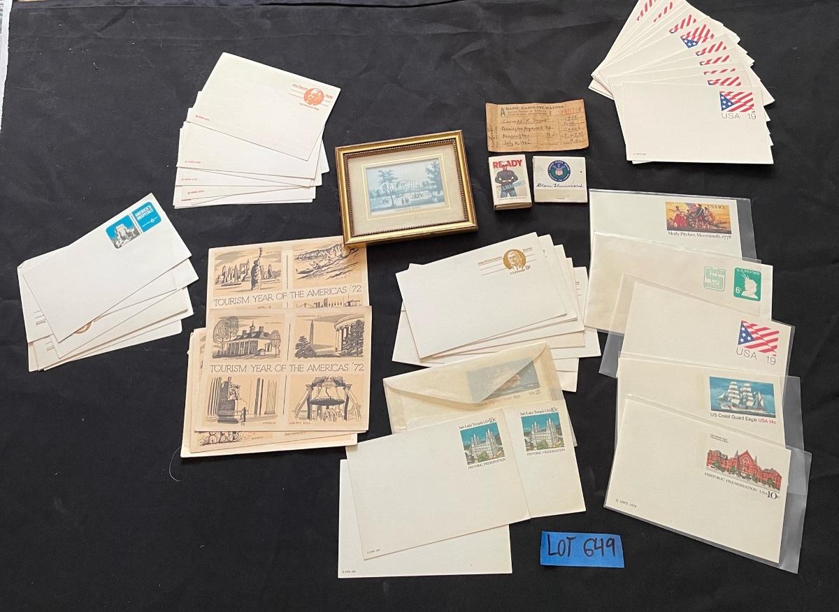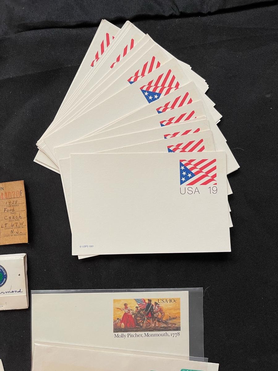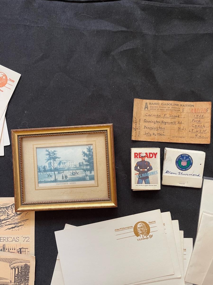 Lot of new unused vintage postcards, US Marinese matches, US Senate matches, 1969 framed White House photo with signature, basic gasoline ration Ford 1938 Ford Coach.