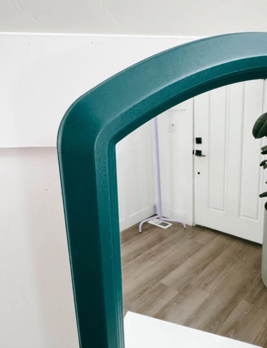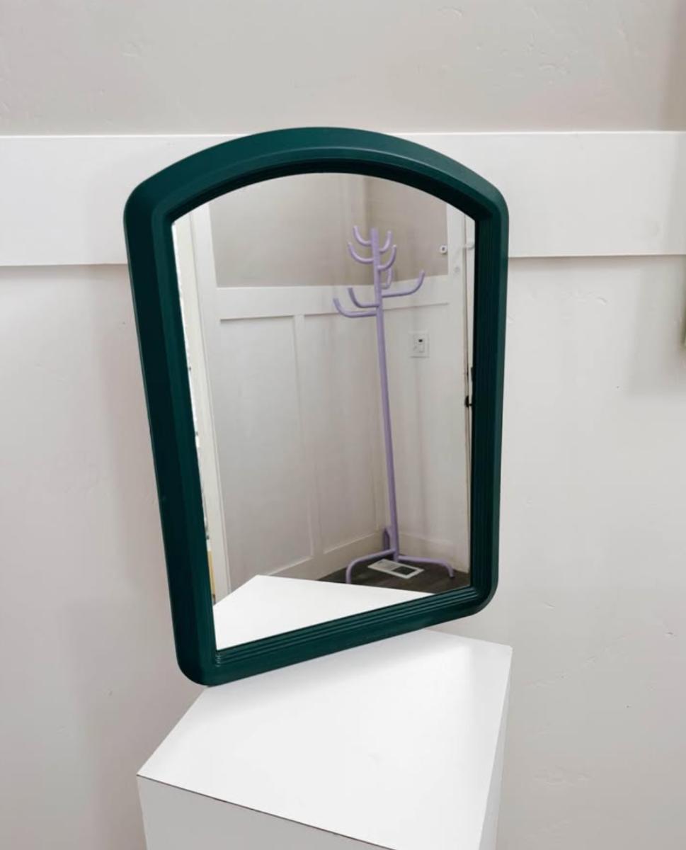 Vintage Post Modern Forest Green Molded Plastic Arch Top Wall or Table Top Mirror by InterDesign