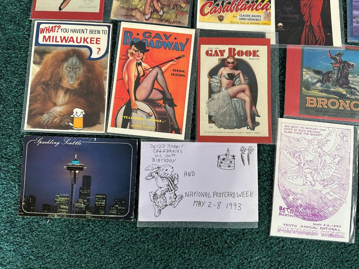 Assortment of vintage postcards like Casa Blanca, Film Fun and more.