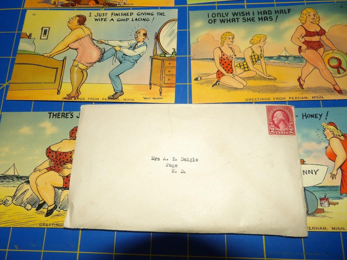 These are in near mint condition and not written on. they were in original envelope since the 60's. Very funny post cards!