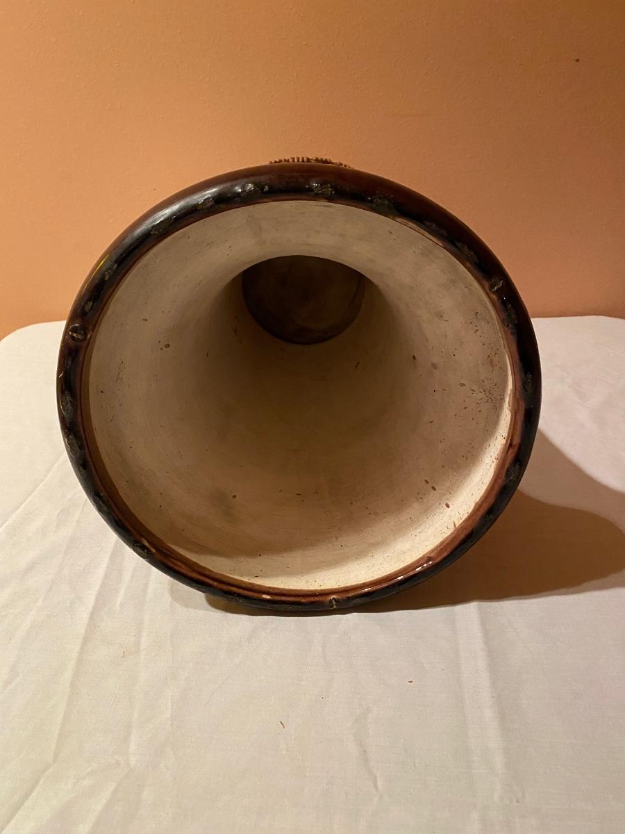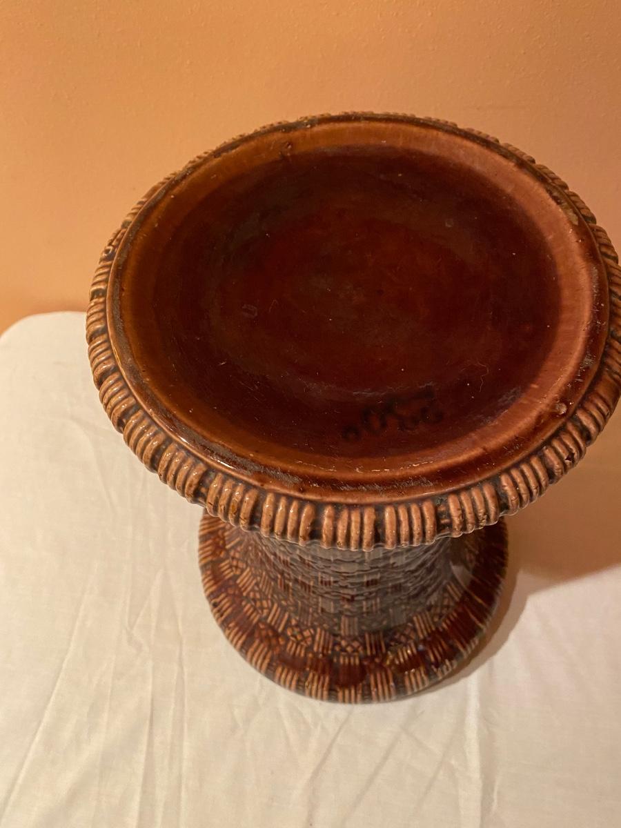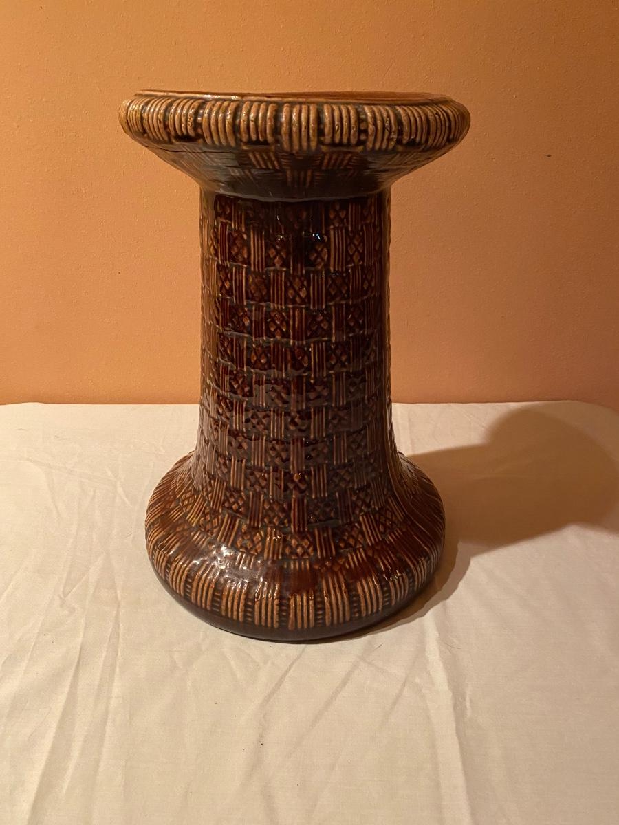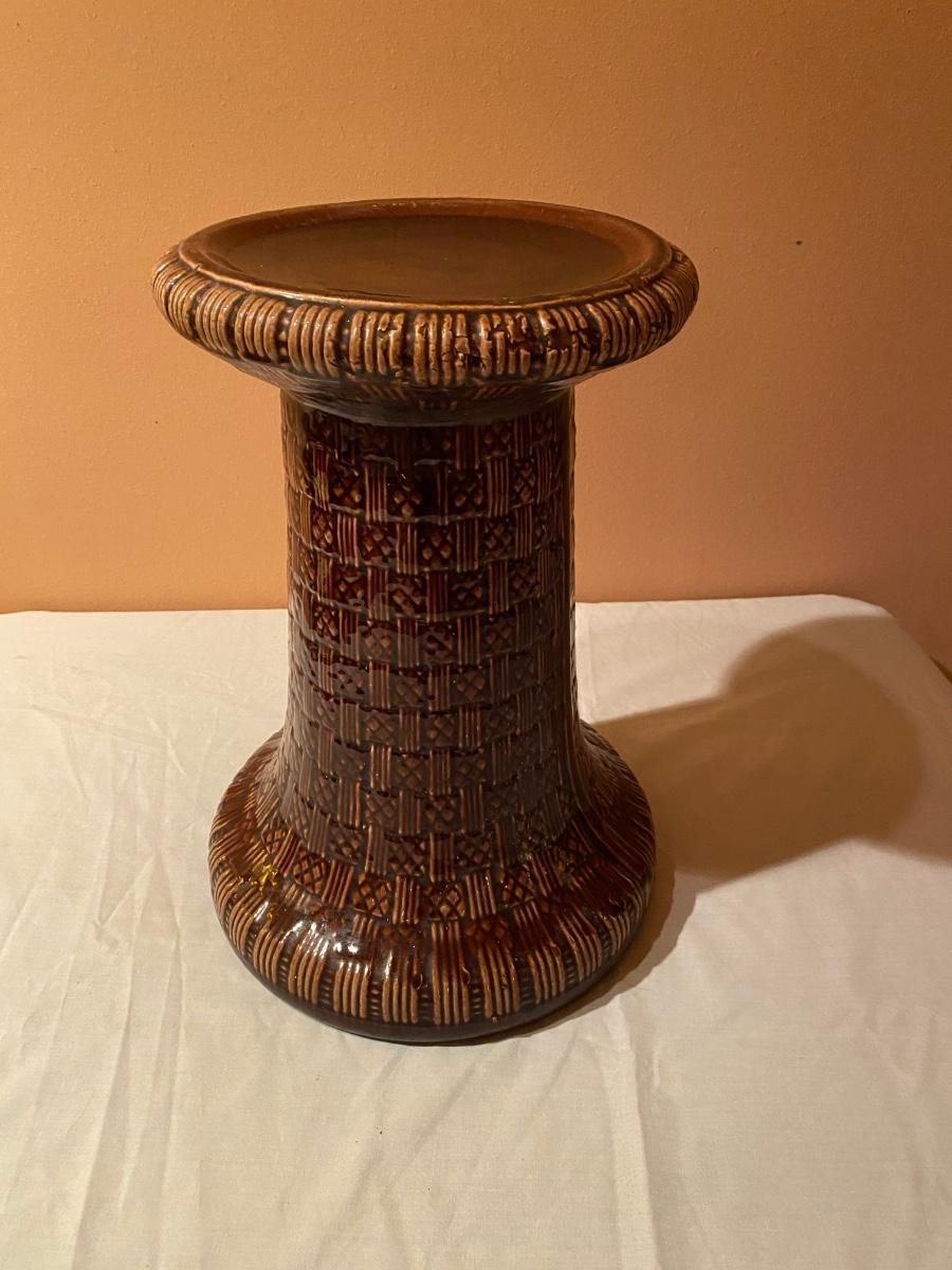 Vintage pottery plant stand - McCoy? Excellent condition. Approx 10w x 15-1/2h. I have a jardiniere to match this on another auction, but it is damaged.