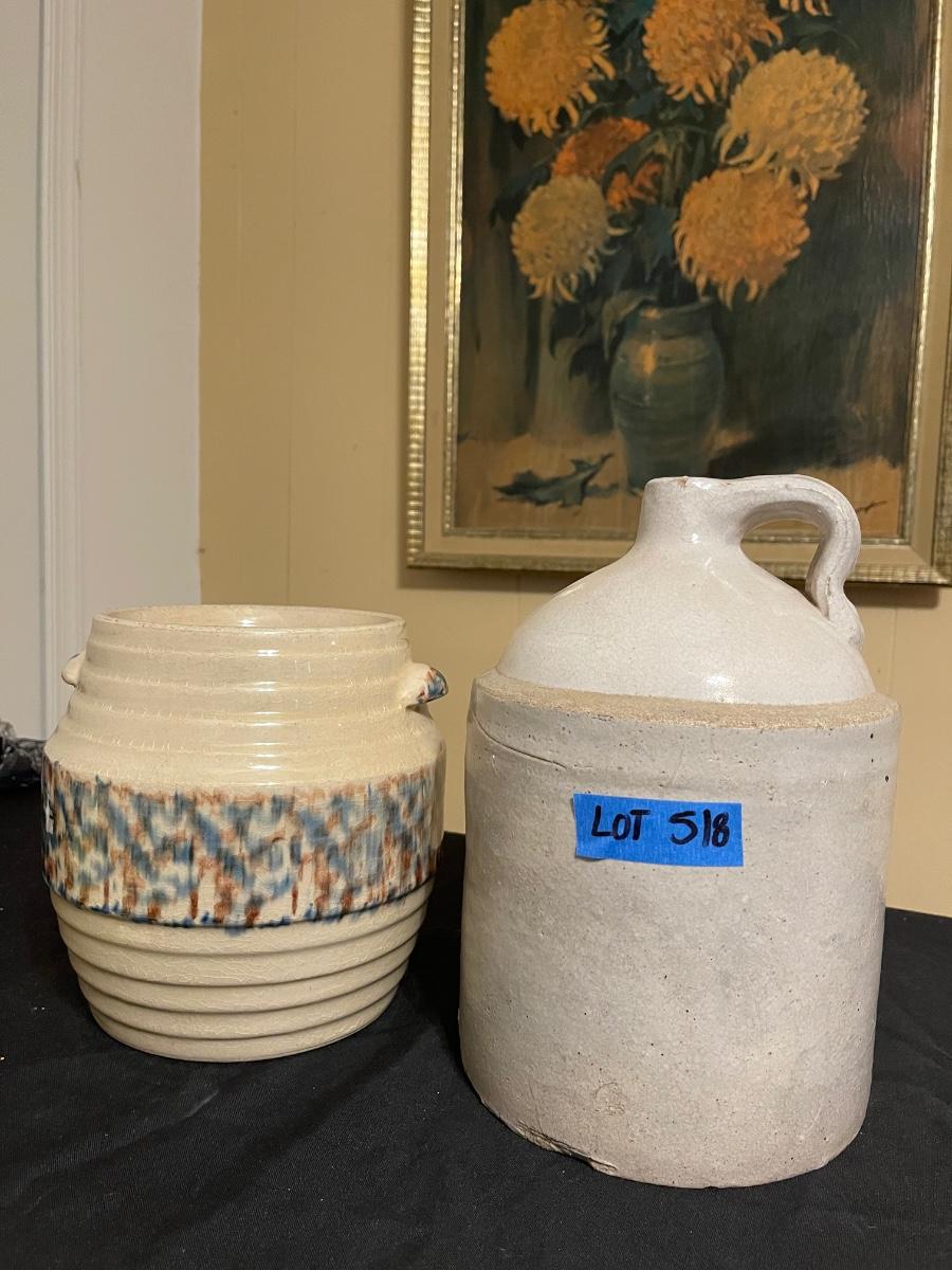 Vintage pottery jug pitcher (11 x 7"), pottery jug (8 x 7")