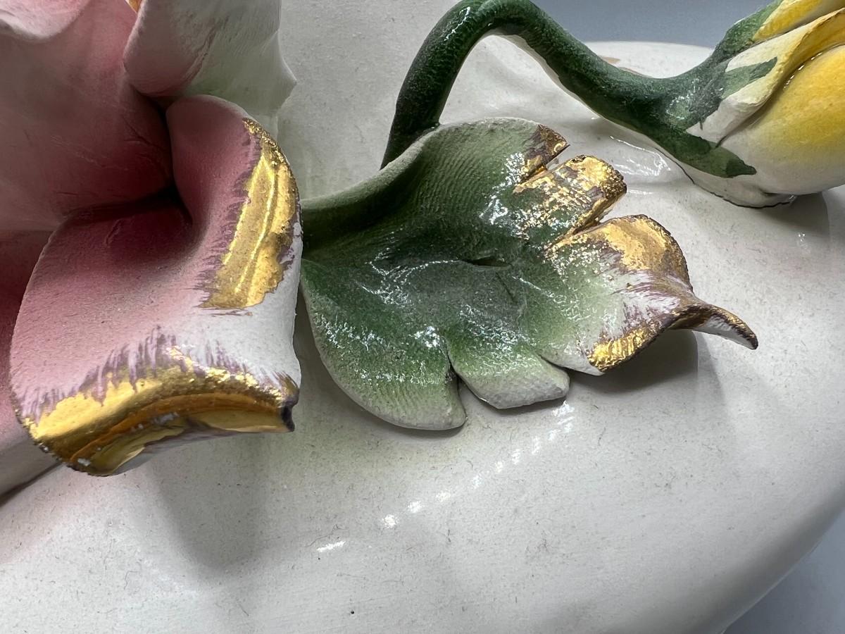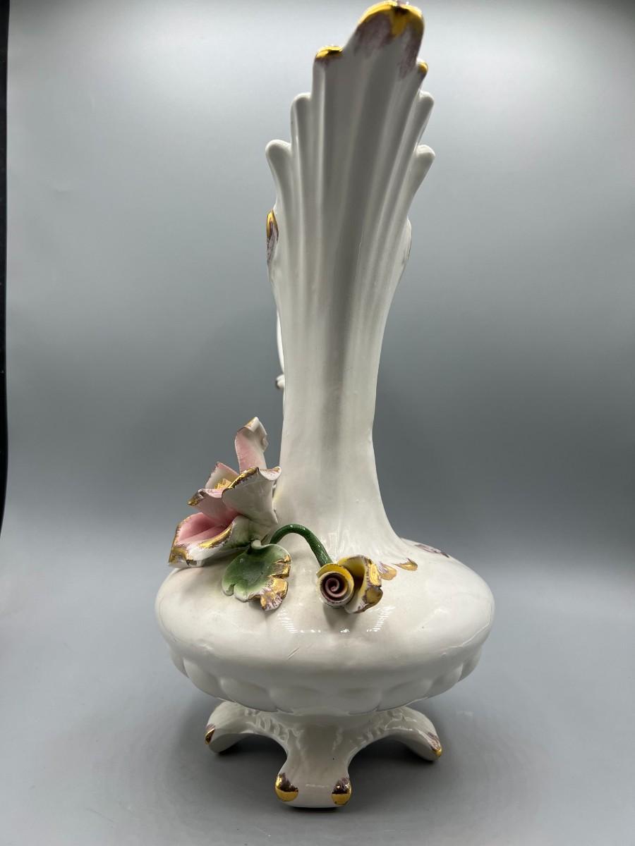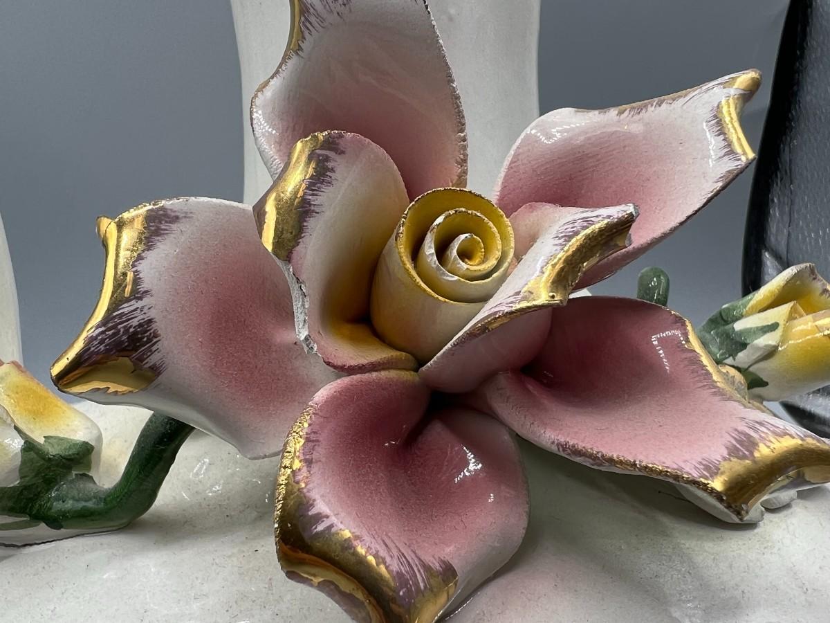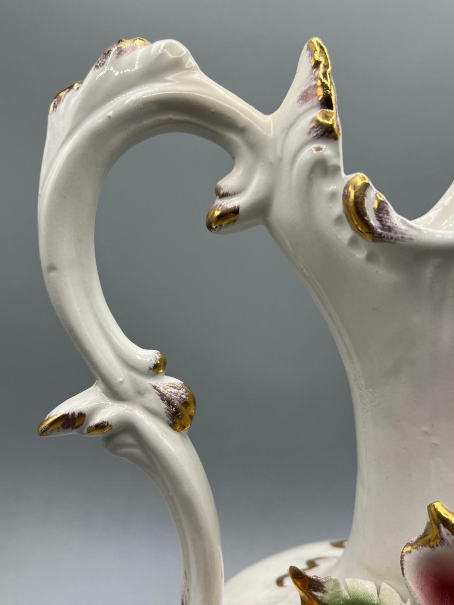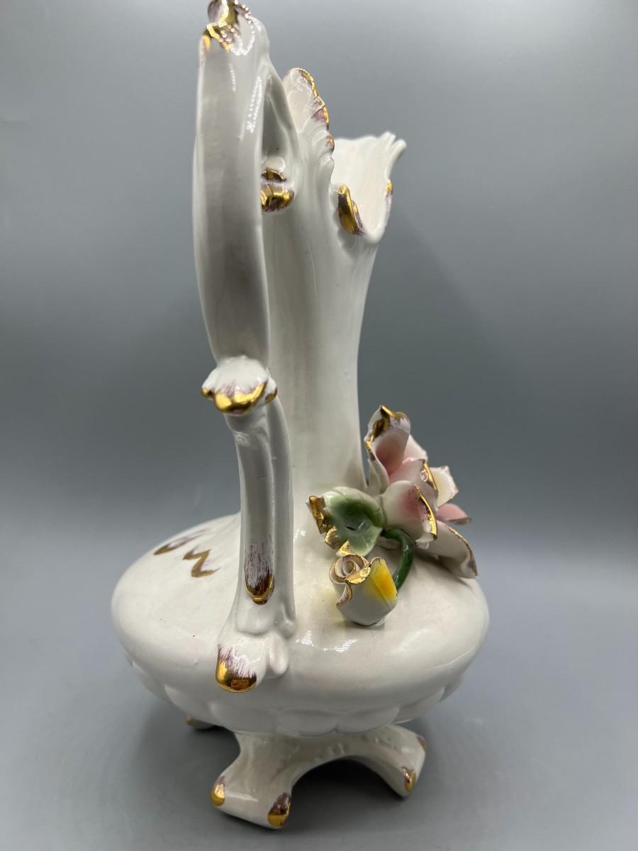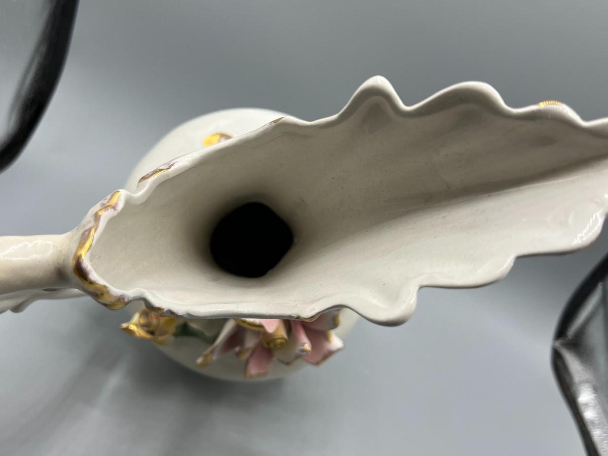 Vintage Pottery Art Capodimonte Porcelain Hand Painted Flower Pitcher