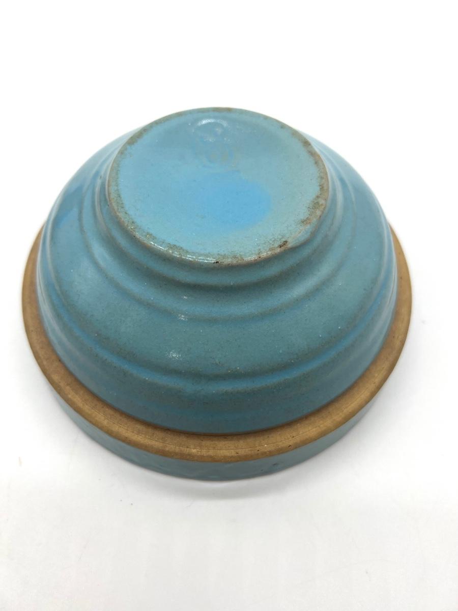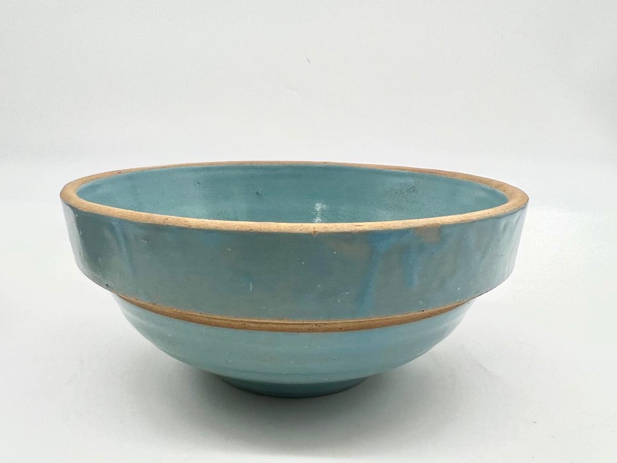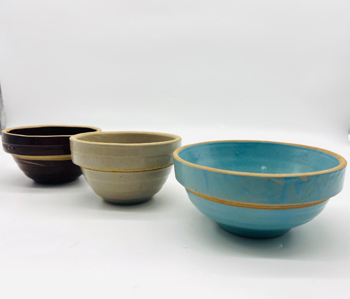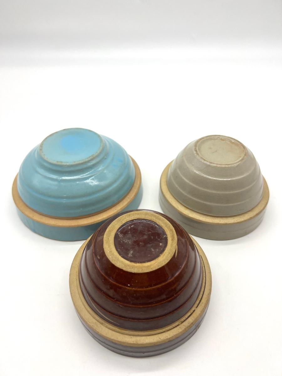 Three Vintage pottery crocks turquoise number six, Measures 6 inches round. Other two measure 5 inches round.