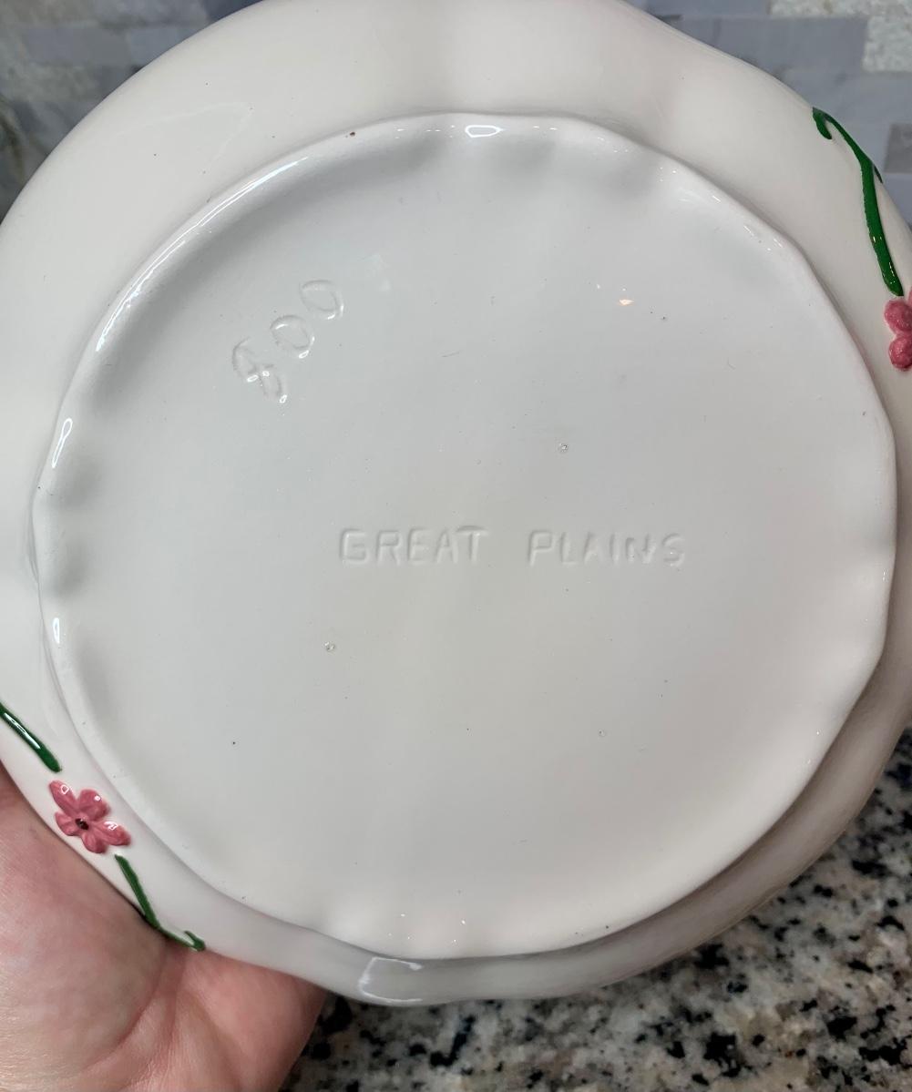 Beautiful vintage pottery by Great Plains some call it a casserole dish and others have used it for a trinket bowl. This bowl is way to pretty to be used as a casserole dish use at your own discretion.
