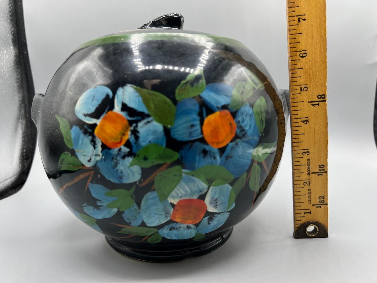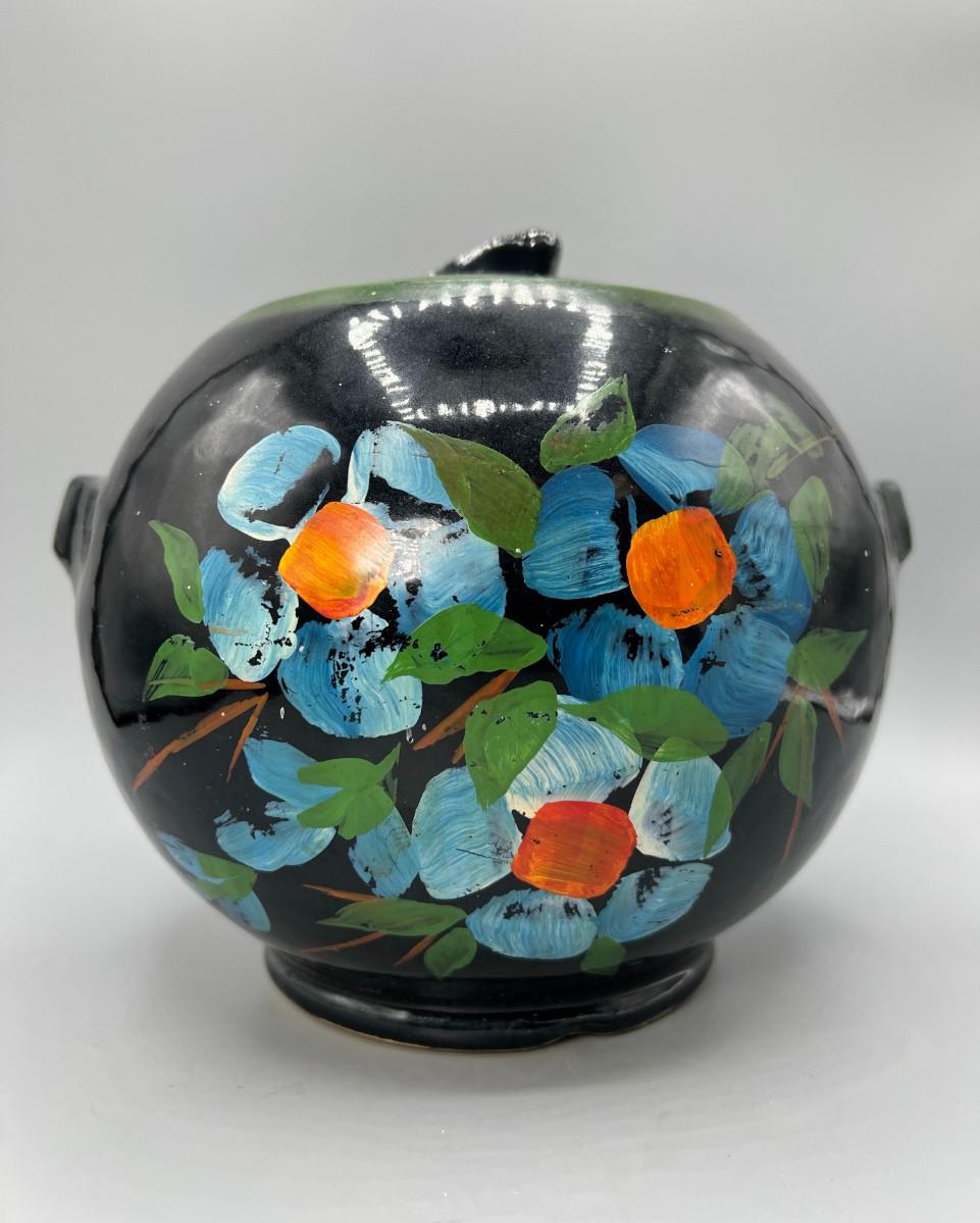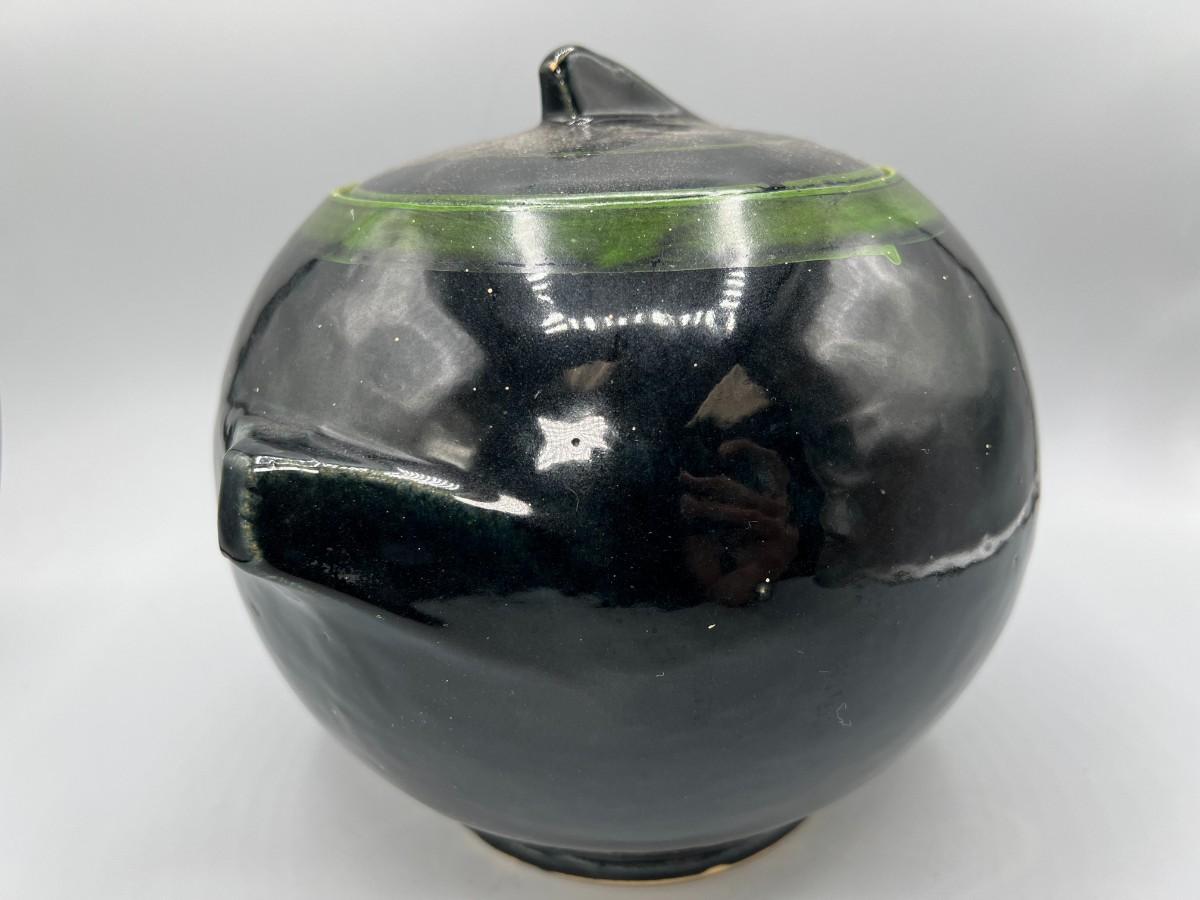 Vintage Pottery Ceramic Art Round Storage Vessel, there is no significant damage to the ceramic vessel and is in good displayable condition. Check pictures for more details and for sizing.