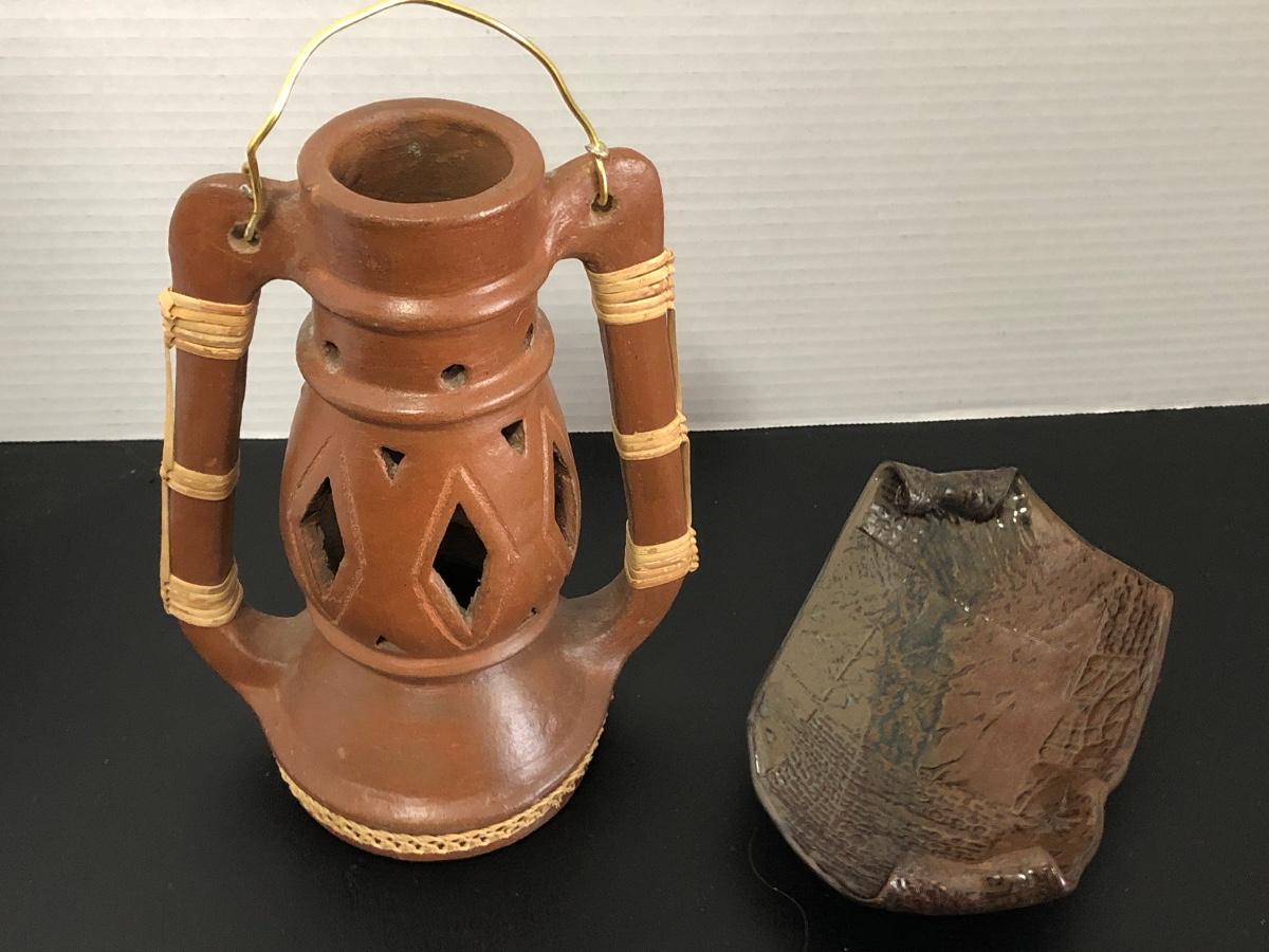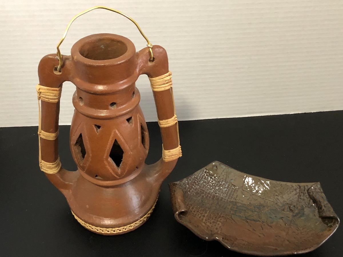 Vintage Pottery / Terra Cotta; Lantern & Signed Dish