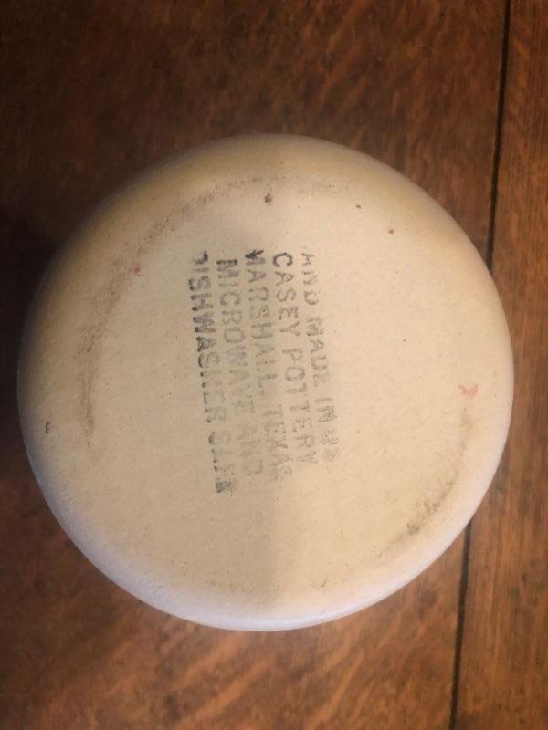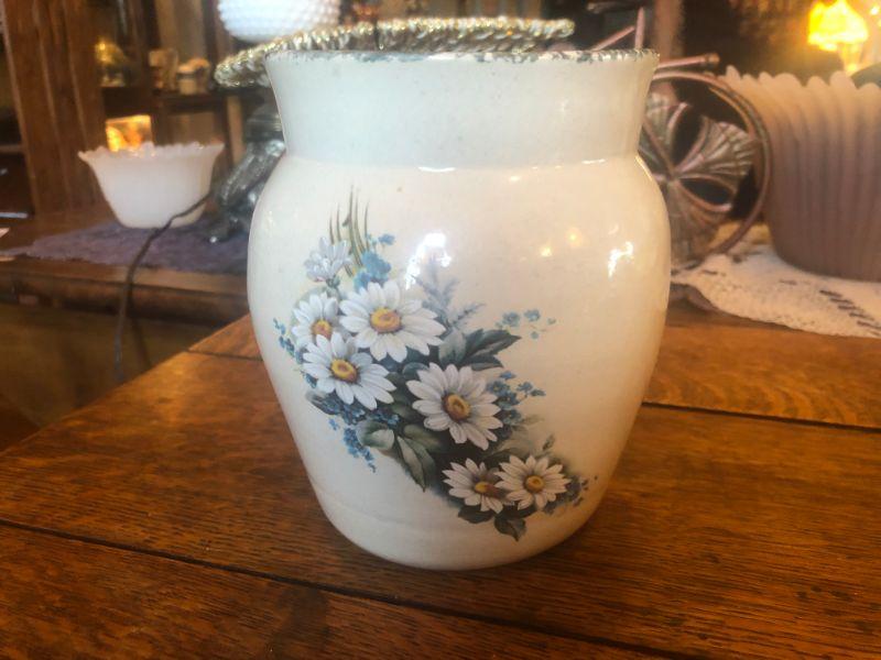 CASEY POTTERY, MADE IN MARSHALL, TX, ADORABLE POTTERY CREAM VASE WITH DAISY FLOWERS. 6"T X 4 1/2" W