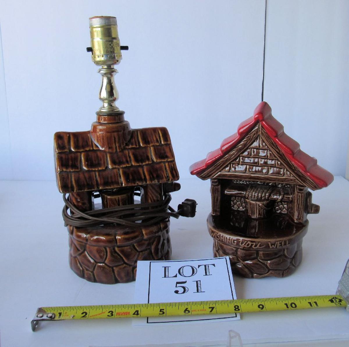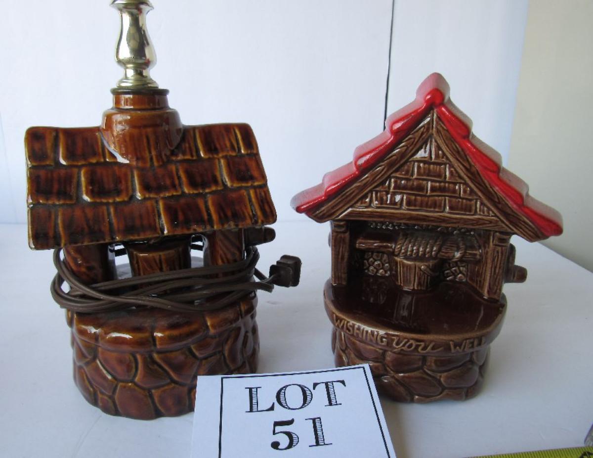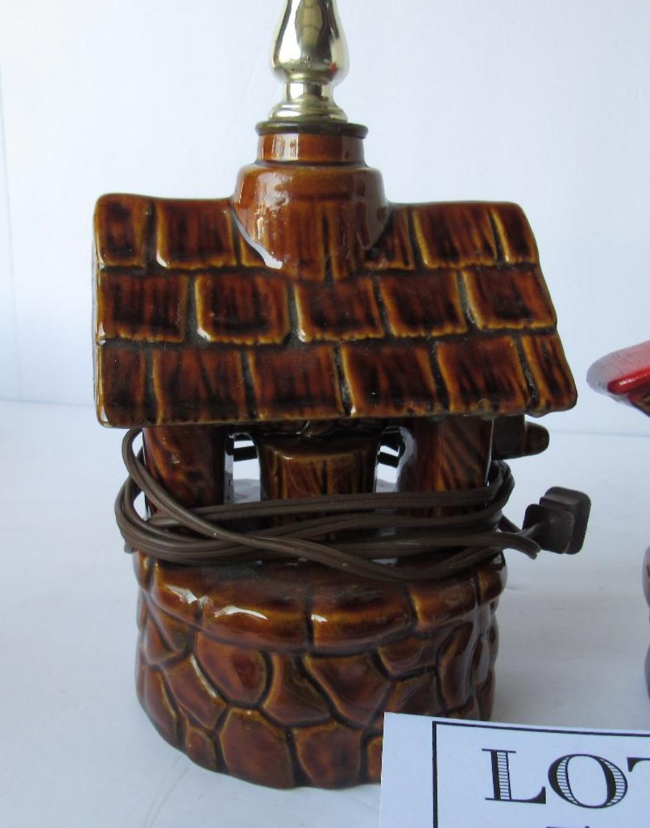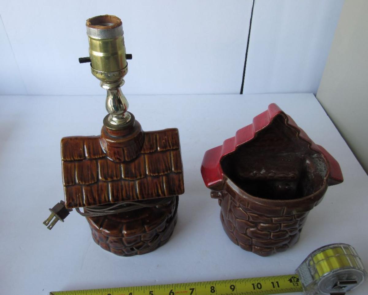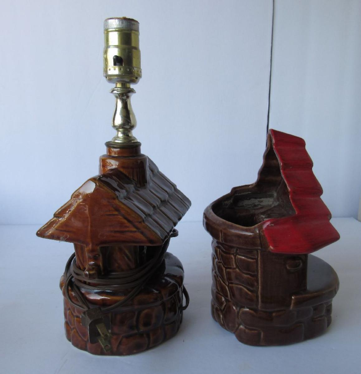 Vintage Pottery Wishing Well Lamp and Wishing Well Planter