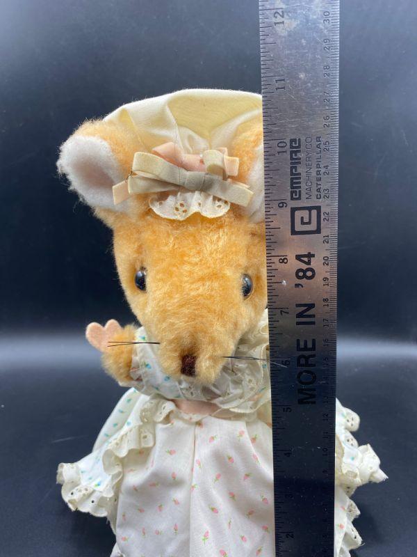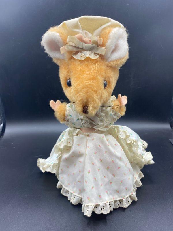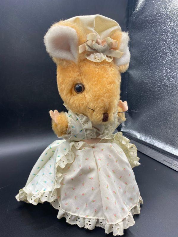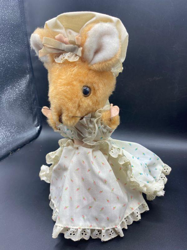 Vintage prairie mouse. Wearing a cute pastel dress and hat. Maybe be dusty from display. Tag has been cut.