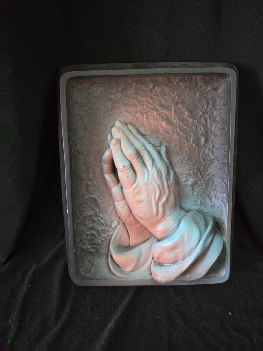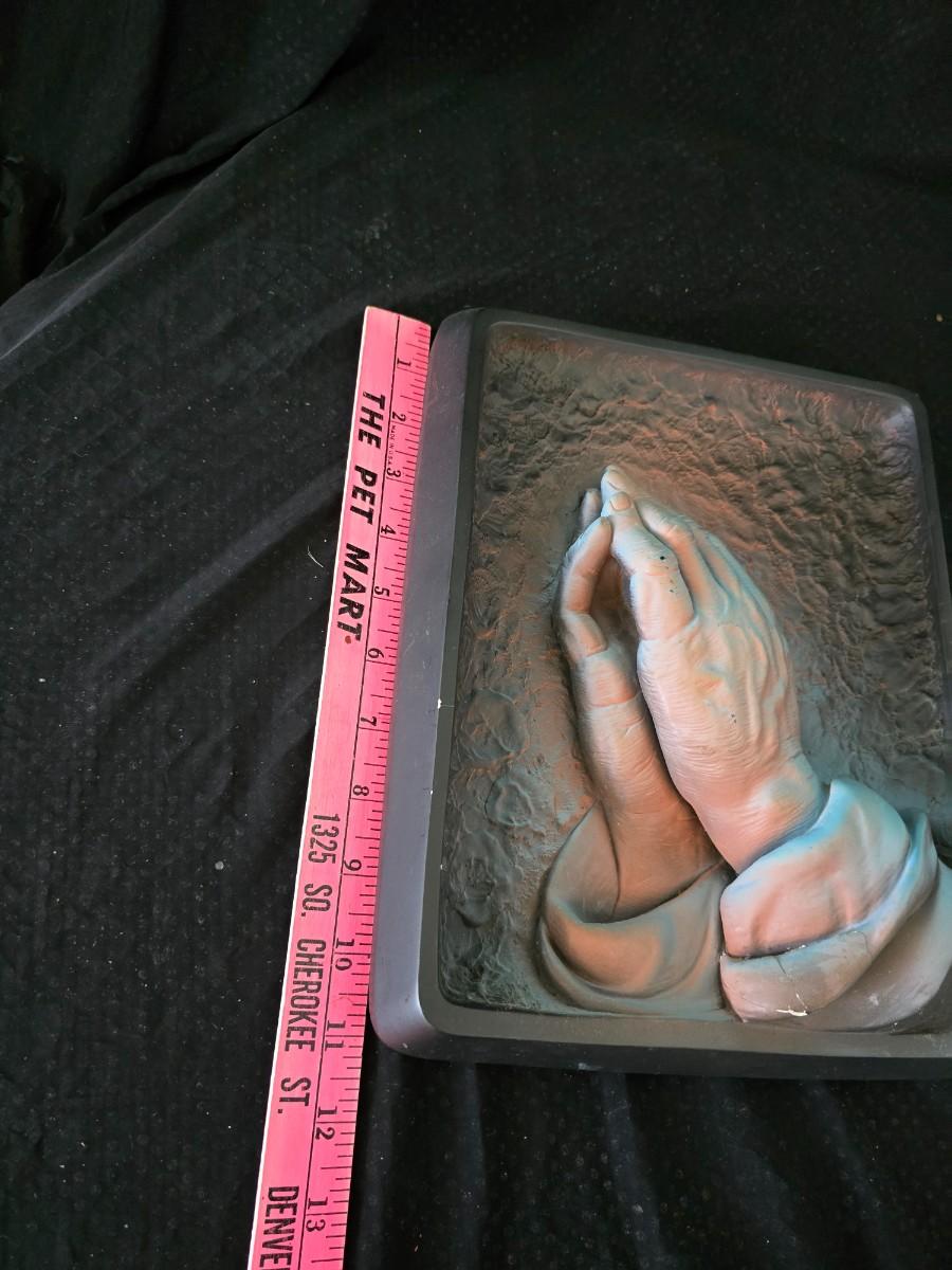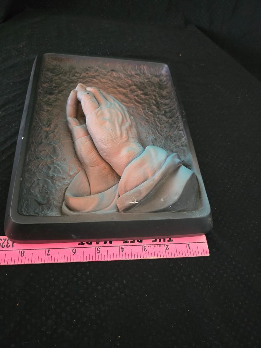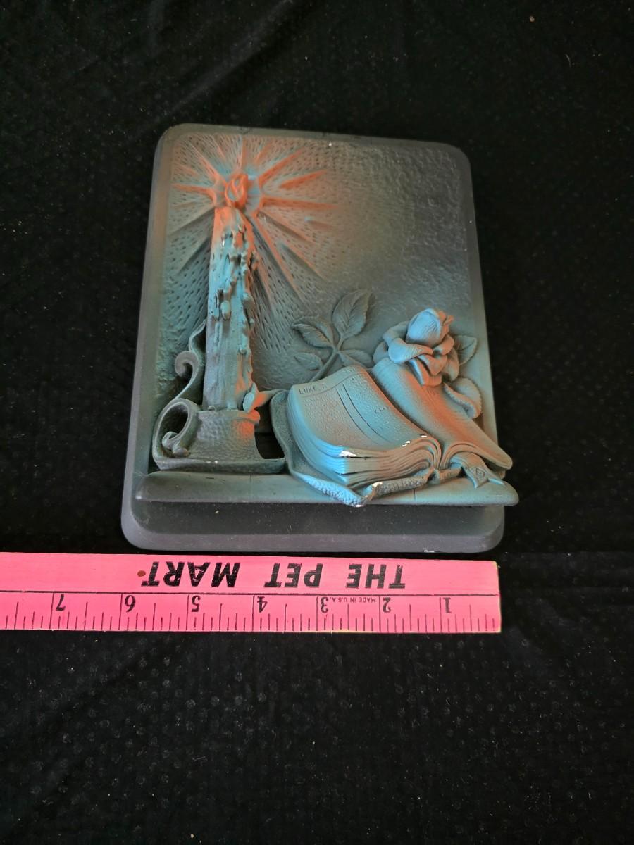 vintage "Prayer" and "Eternal Light" 3D plaques by Victor for Creative Arts, Inc., originally produced around 1959-1964.