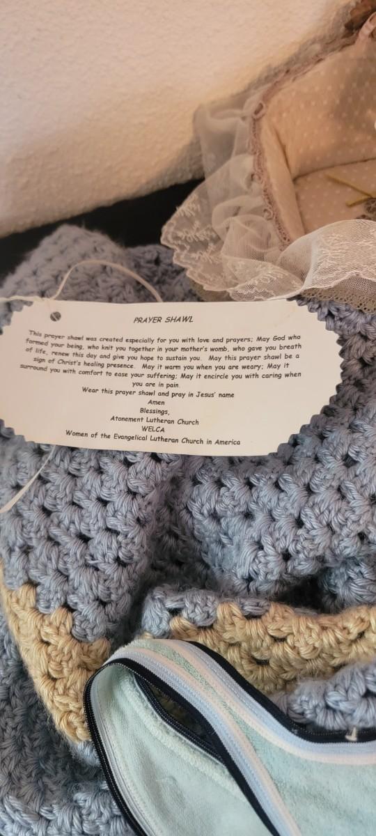 Vintage prayer shawl, basket, gloves