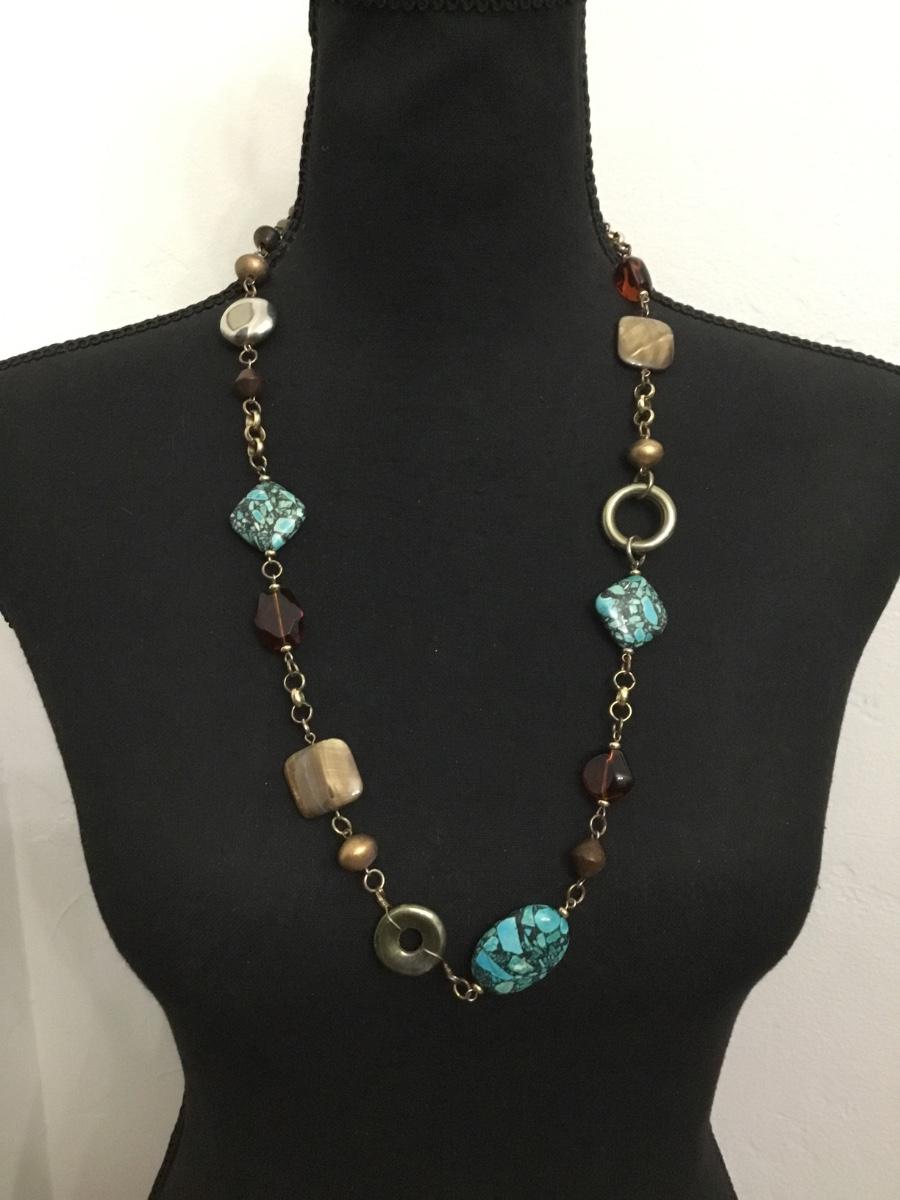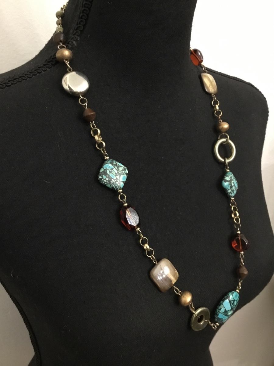 Vintage premier, design, gold, toned, stone, and glass bead statement necklace