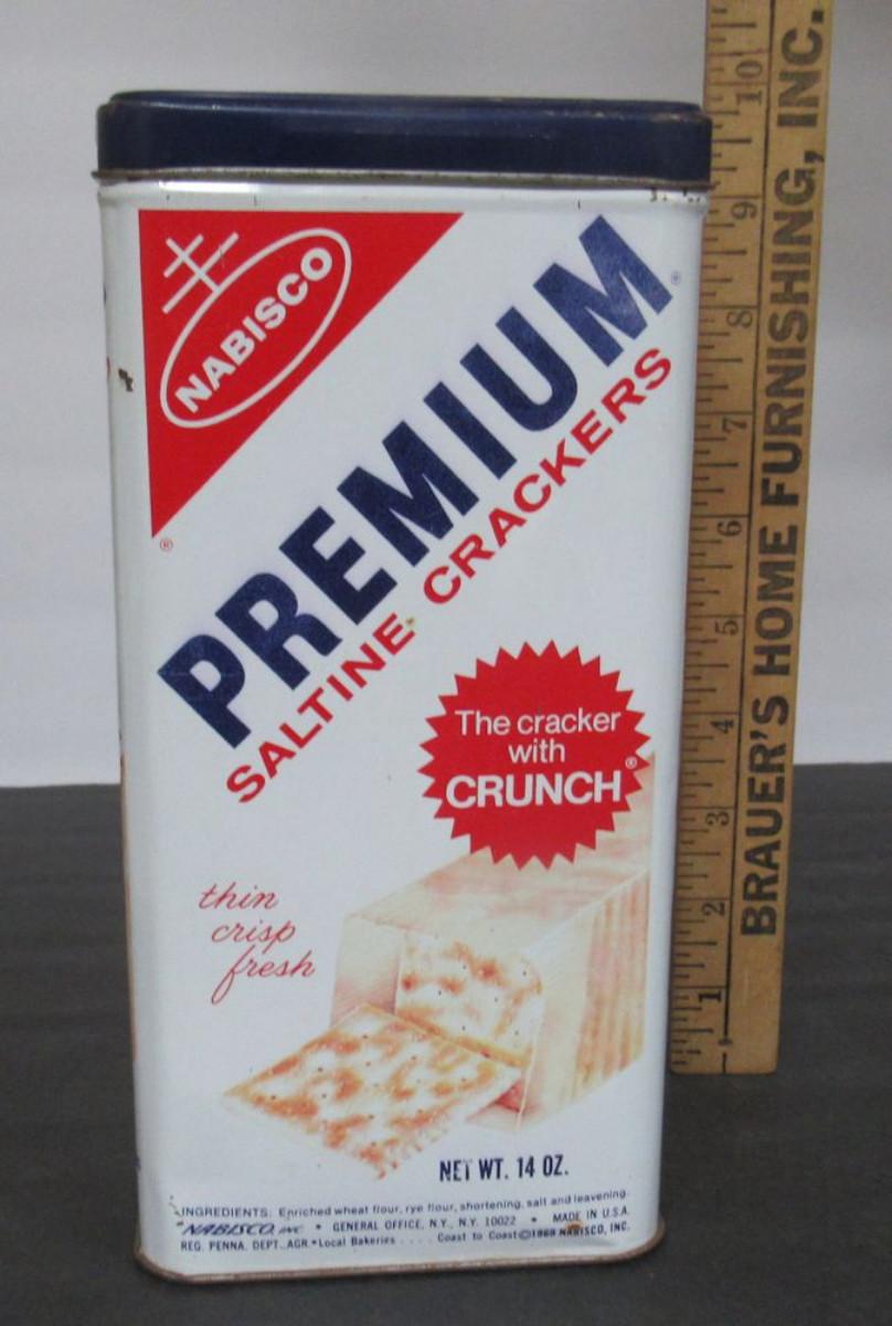 Vintage Premium Saltine Crackers Tin, 1969, 14 Oz