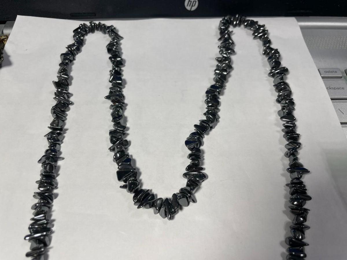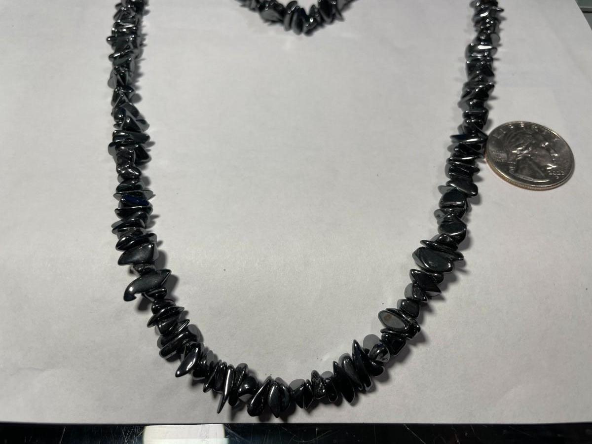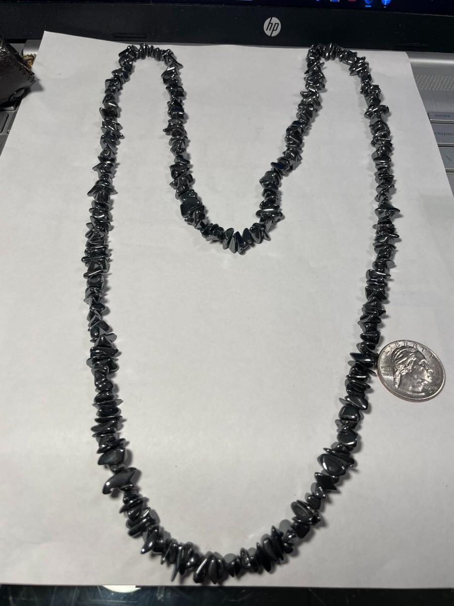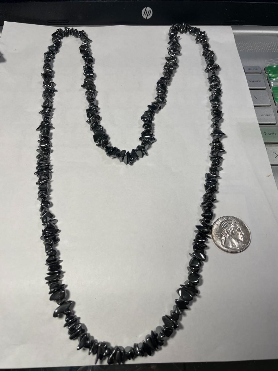 Vintage Preowned Hardly Worn 36" Chip Bead Hematite Necklace in Very Good Condition as Pictured. $5 DOMESTIC SHIPPING.