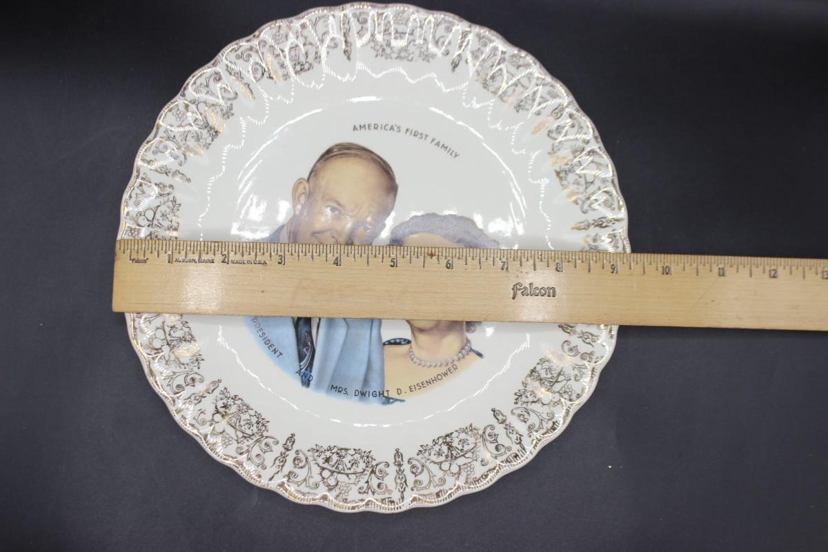 Vintage President and Mrs, Dwight D. Eisenhower Commemorative Collector Plate, there are no significant cracks or chips to the plate and is in good vintage condition. Check pictures for more details and for sizing.