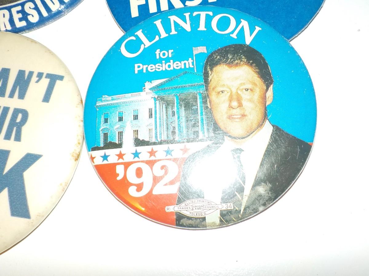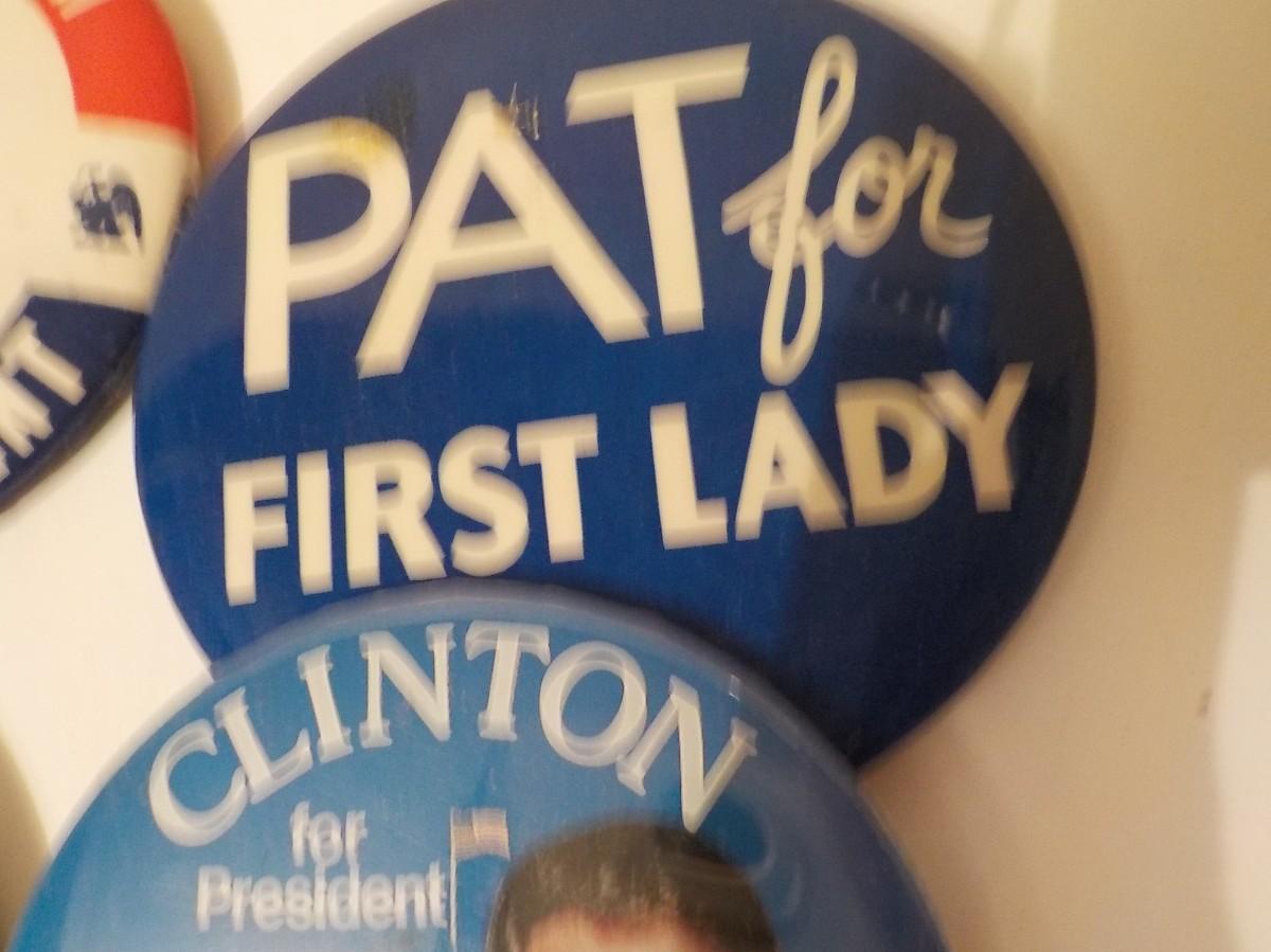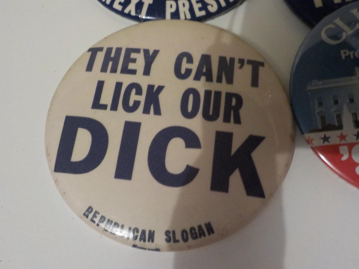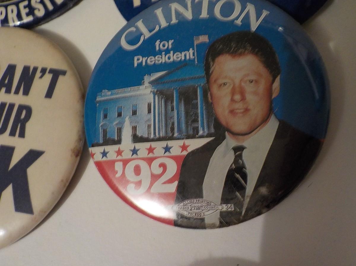 "Vintage presidential Buttons, Richard Nixon and Clinton'.