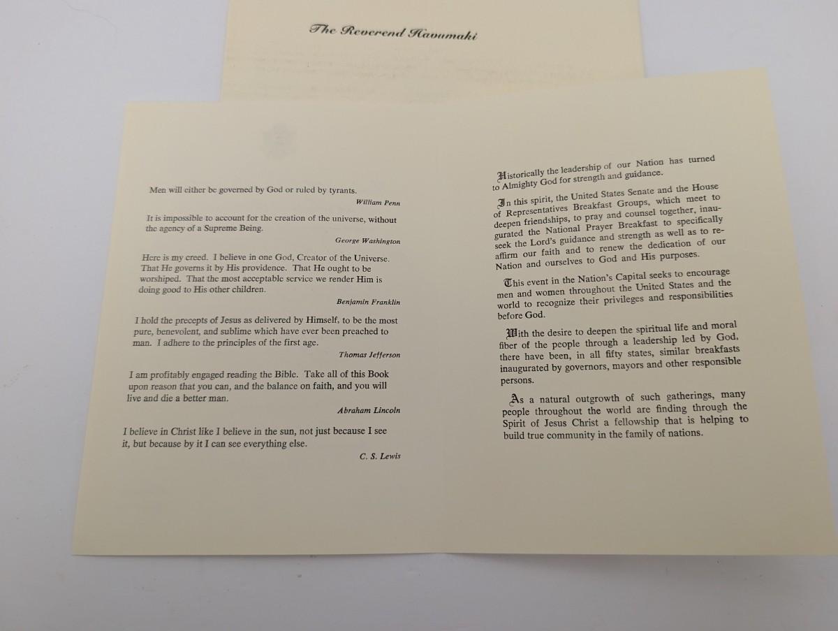 Vintage Presidential Memorabilia Listing: 44th Annual National Prayer Breakfast Invitation