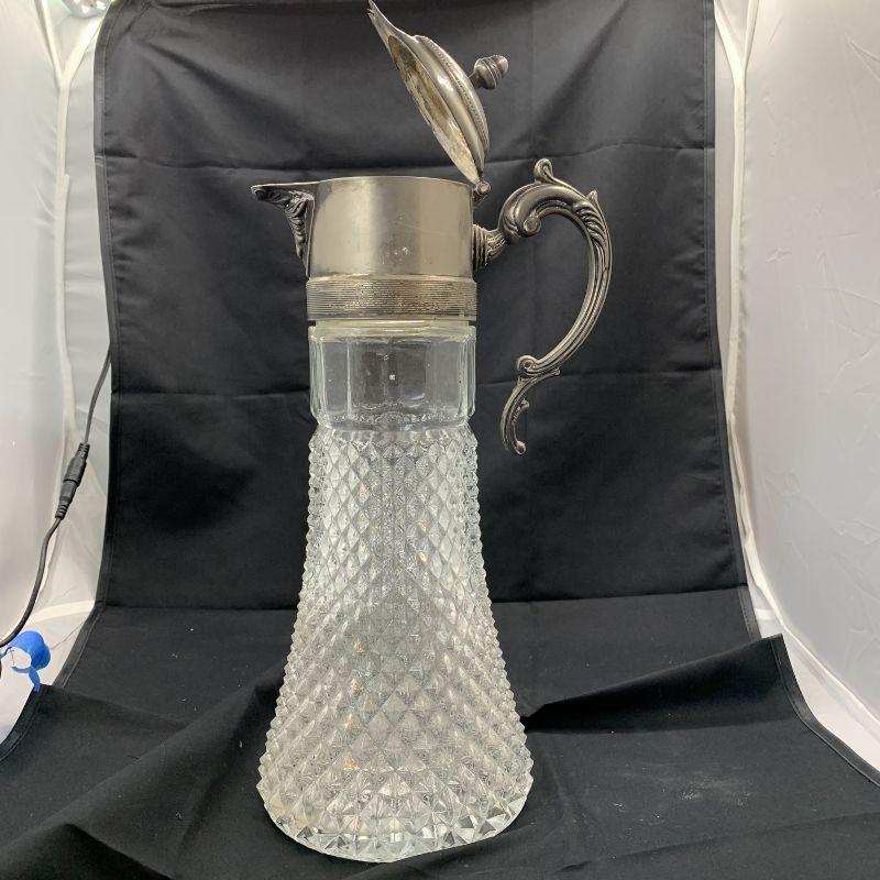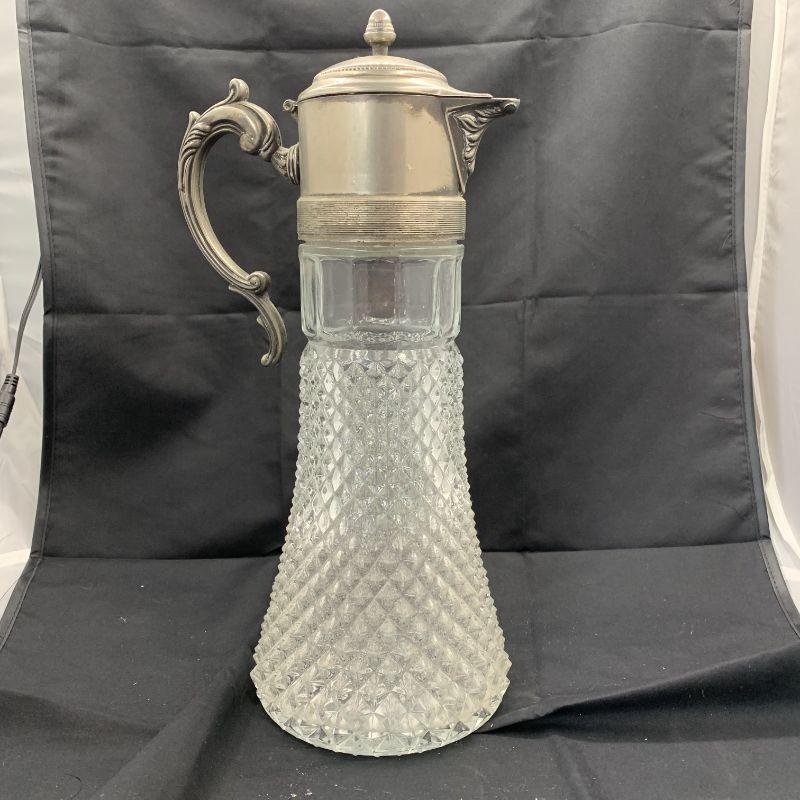 Glass water pitcher with decorative silver spout (removeable)