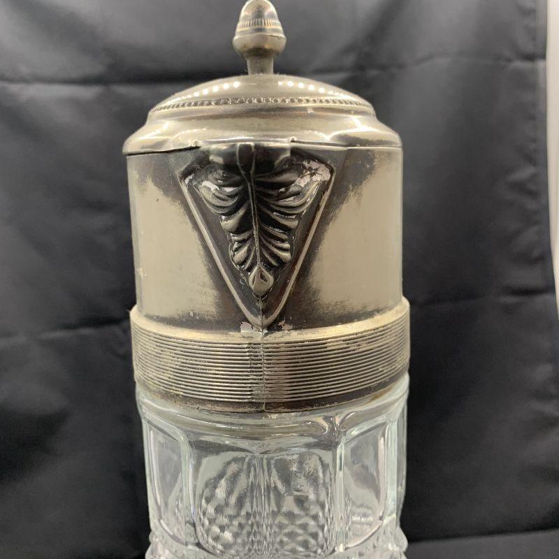 Pressed glass silver water pitcher with Filigree handle spout