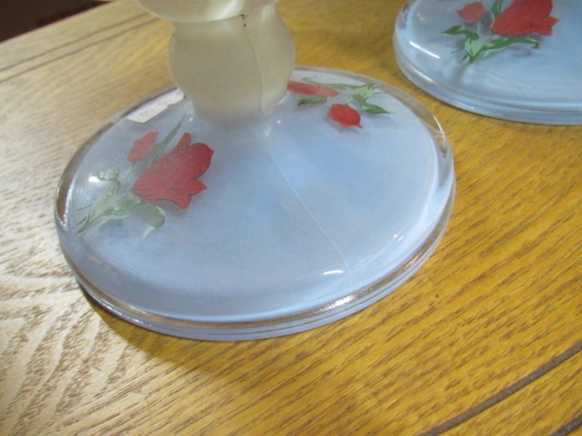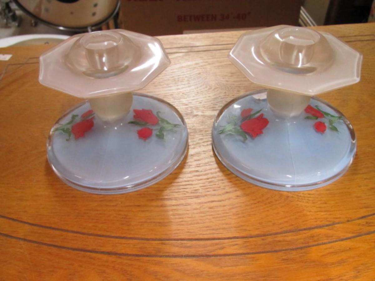 Vintage Pressed Glass Floral Candle Holders Approx 4" Tall