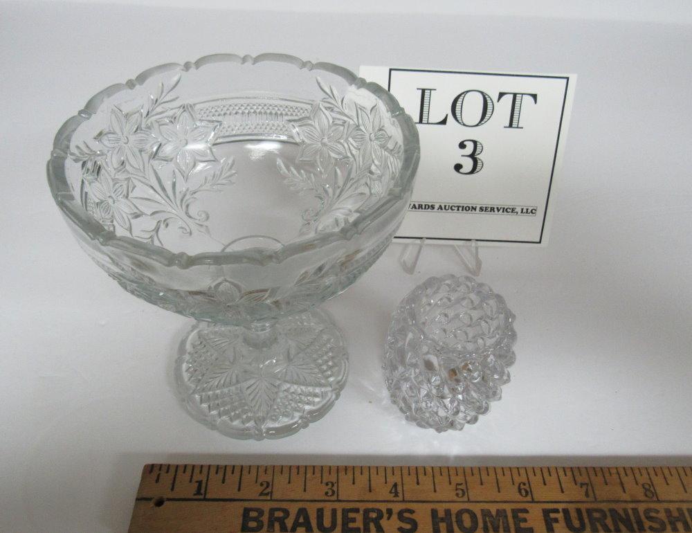 Vintage Pressed Glass Footed Dish and Toothpick Holder