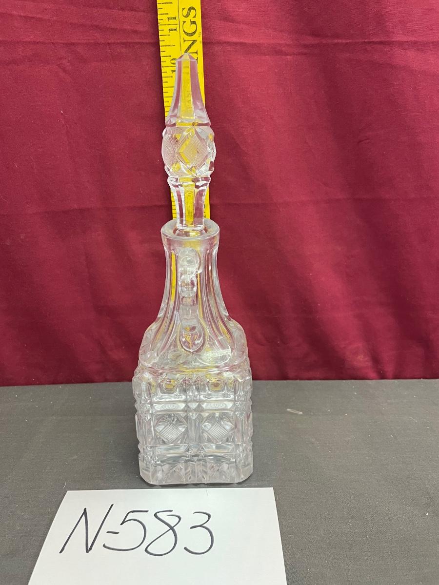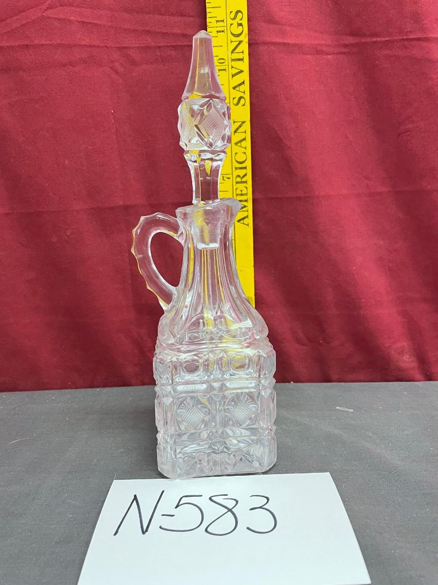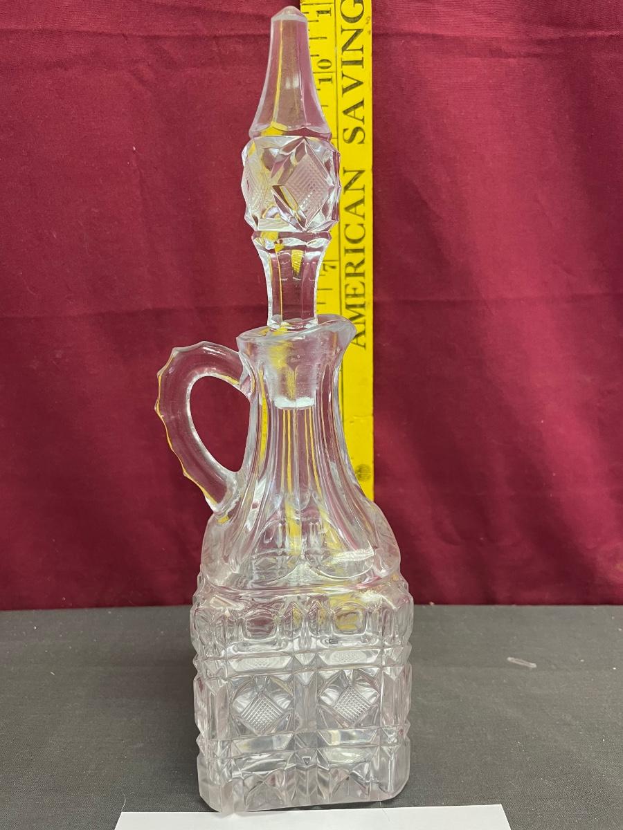 Vintage pressed glass oil or vinegar cruet decanter w/ stopper