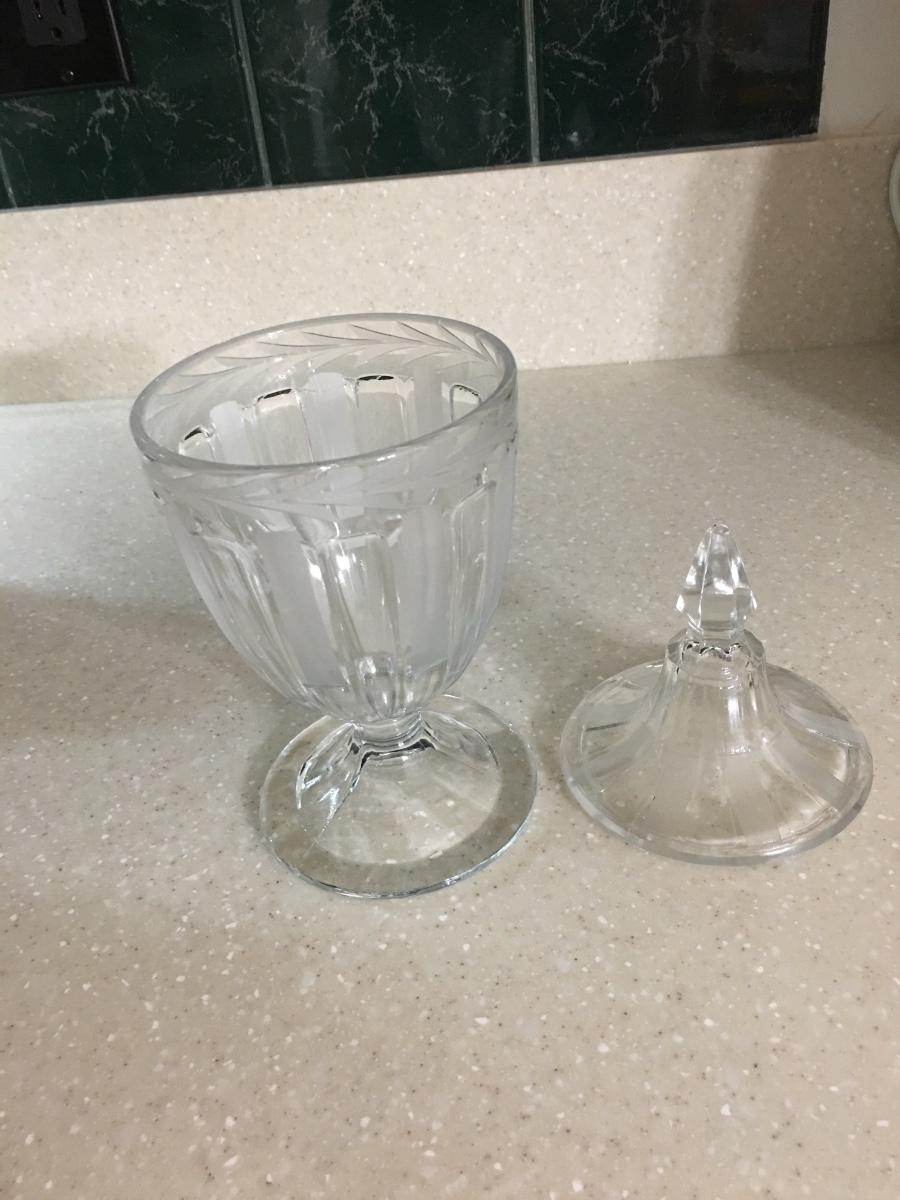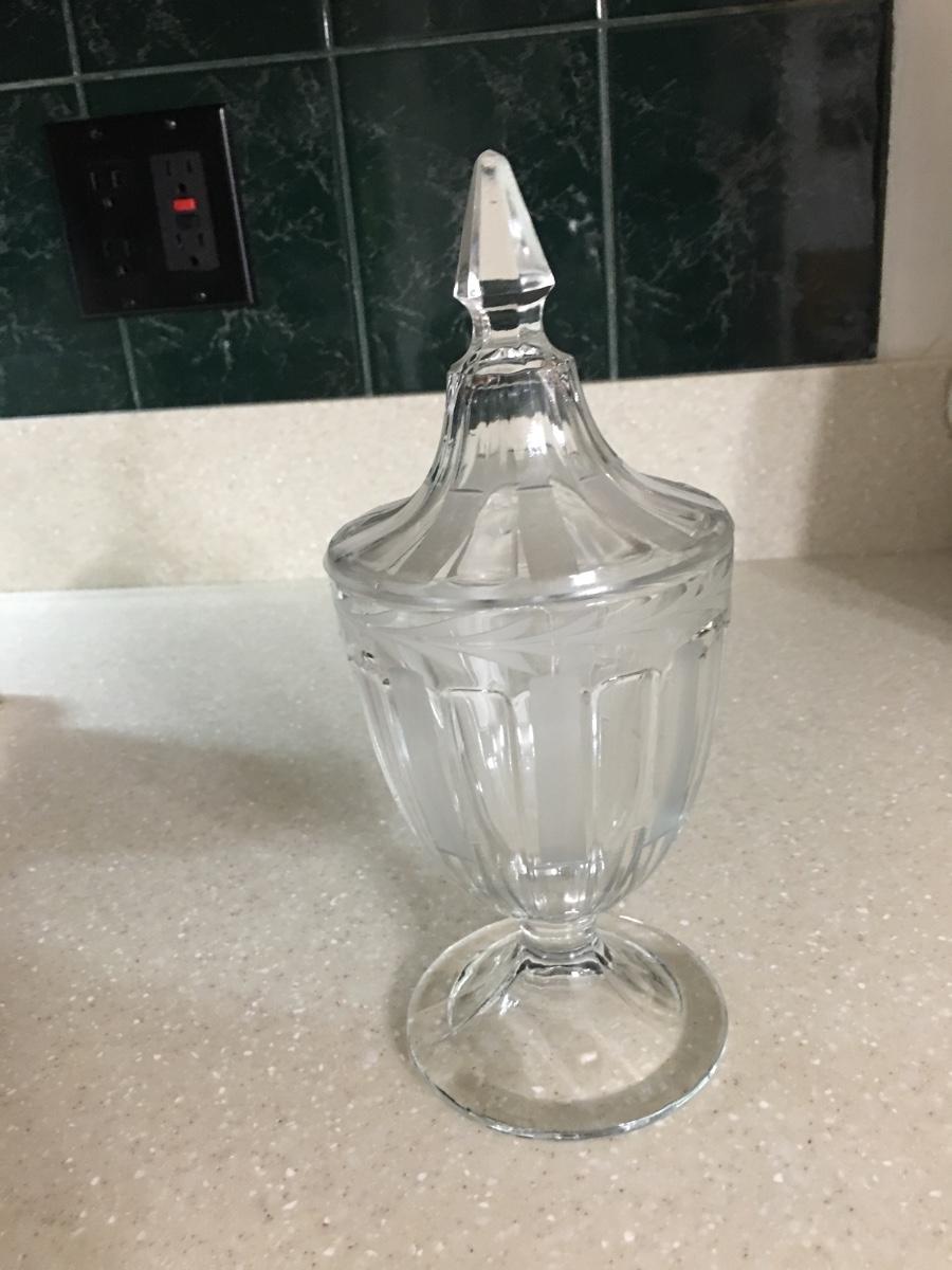 Vintage pressed glass pedestal covered candy jar.