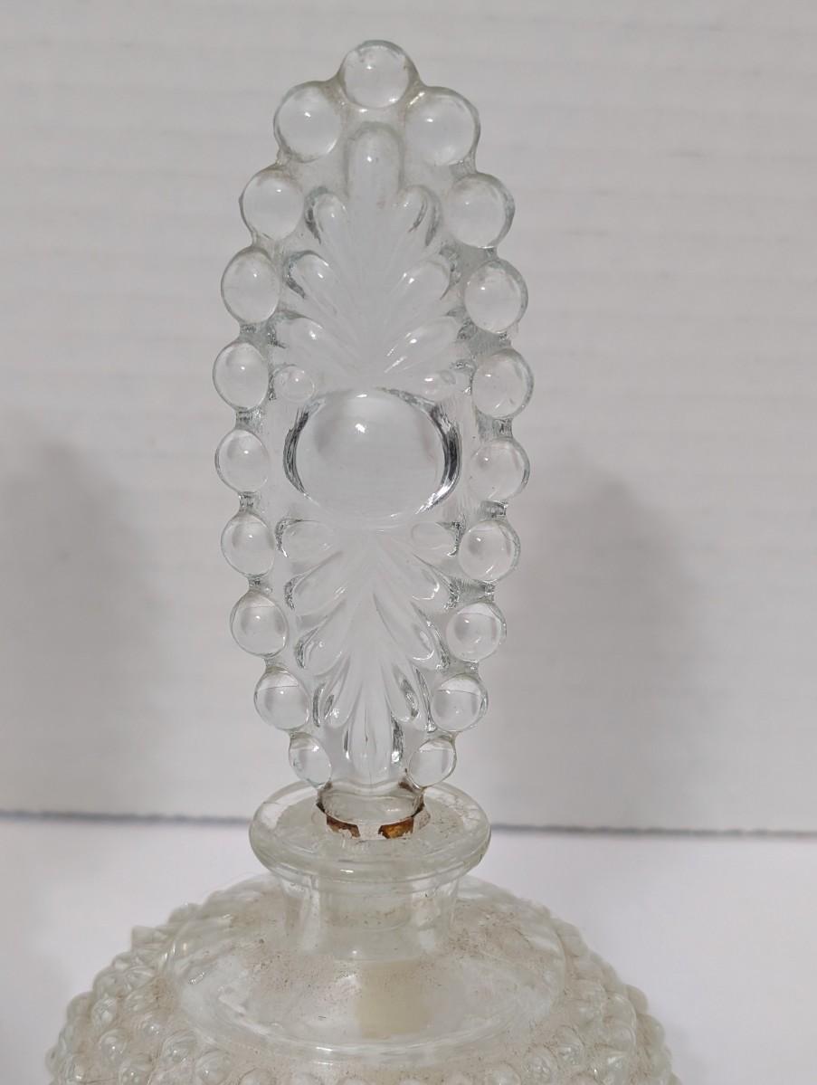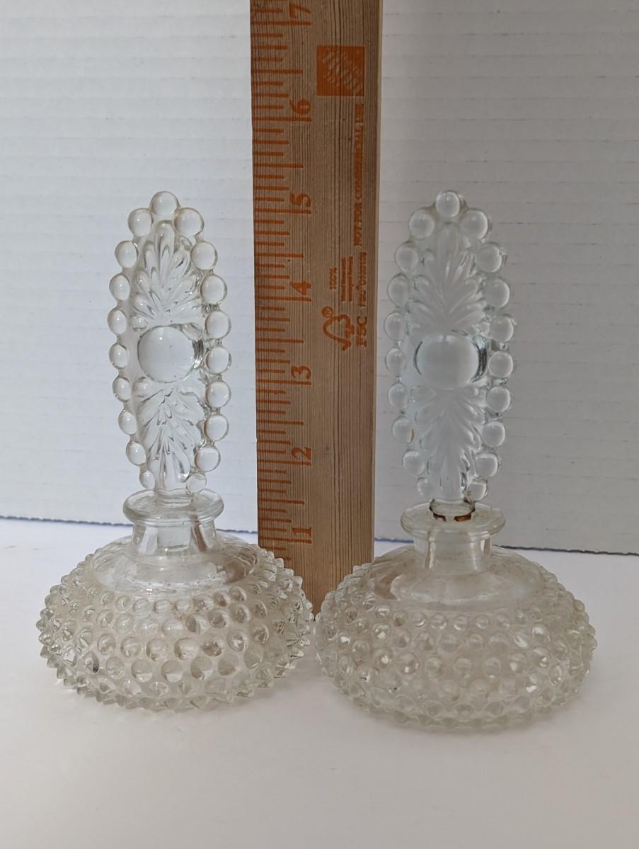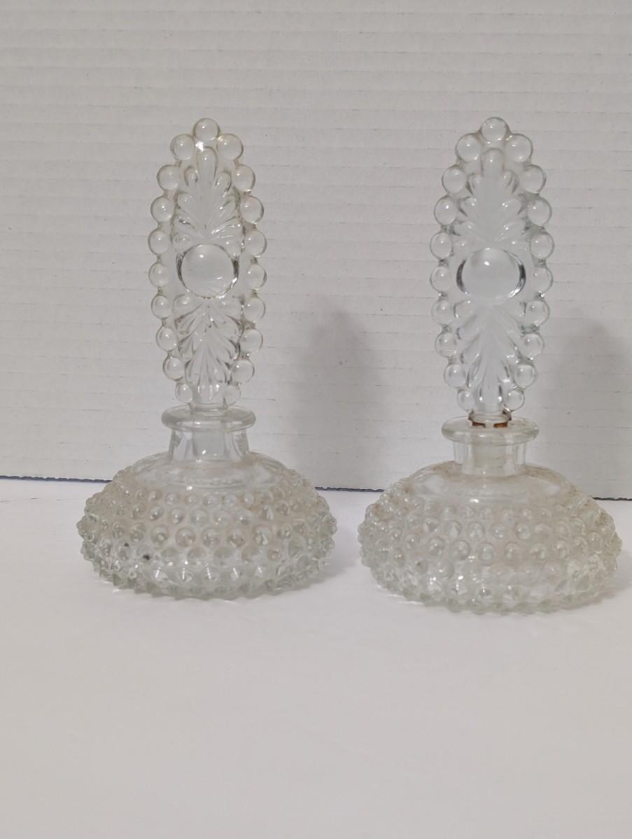 vintage perfume bottles, pressed glass perfume bottle, hobnail glass, bubble glass stopper, vanity bottle, collectible glassware, lot of two, clear pressed glass, antique style perfume bottle