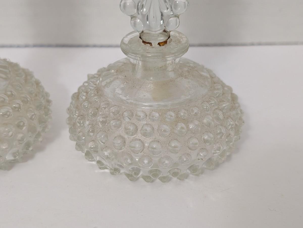 Vintage Pressed Glass Perfume Bottles Lot of Two Hobnail Bases with Bubble Arch Stoppers