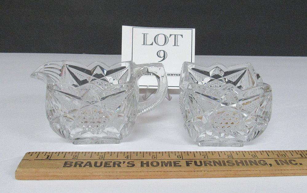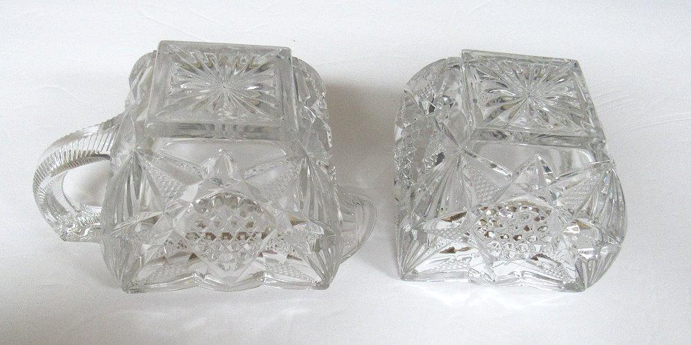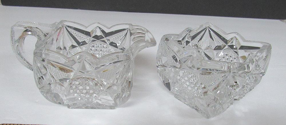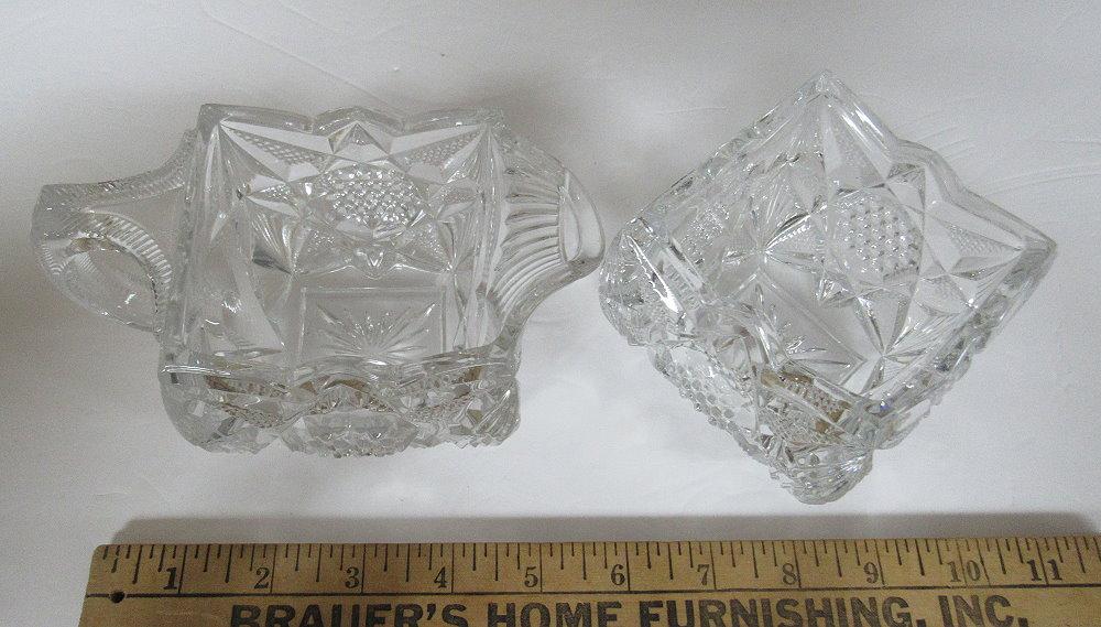 Vintage Pressed Glass Square Fancy Sugar and Creamer Set
