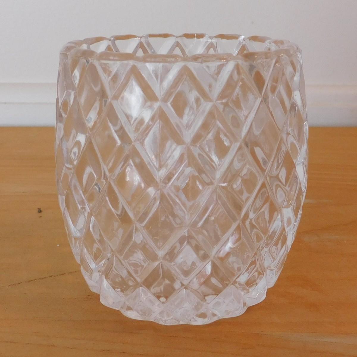 Vintage Pressed Glass Votive Candle Holder, Diamond Pattern
