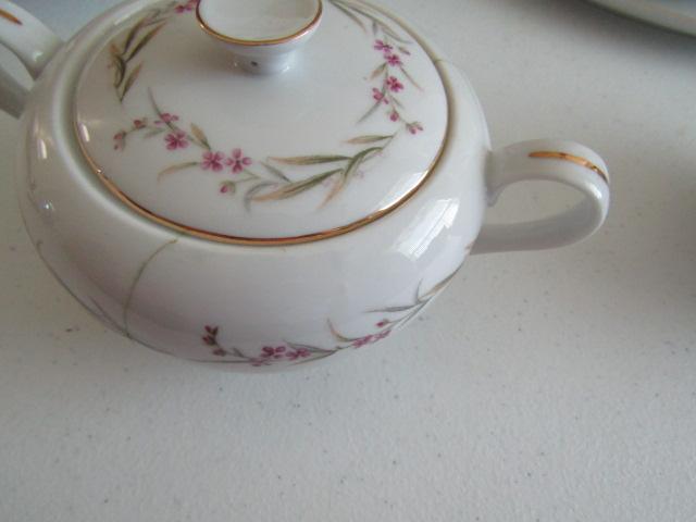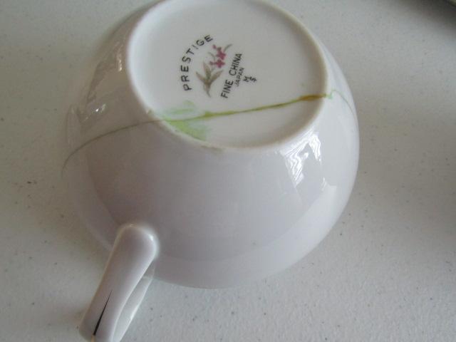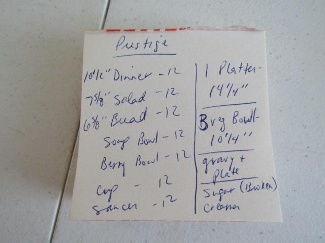 Vintage Prestige Japanese Fine China Set includes Serving Items 7pc 12 Place Settings approximately 88 pieces. Sugar bowl and one tea cup was noticeably repaired as shown. Punch cups are not included in set