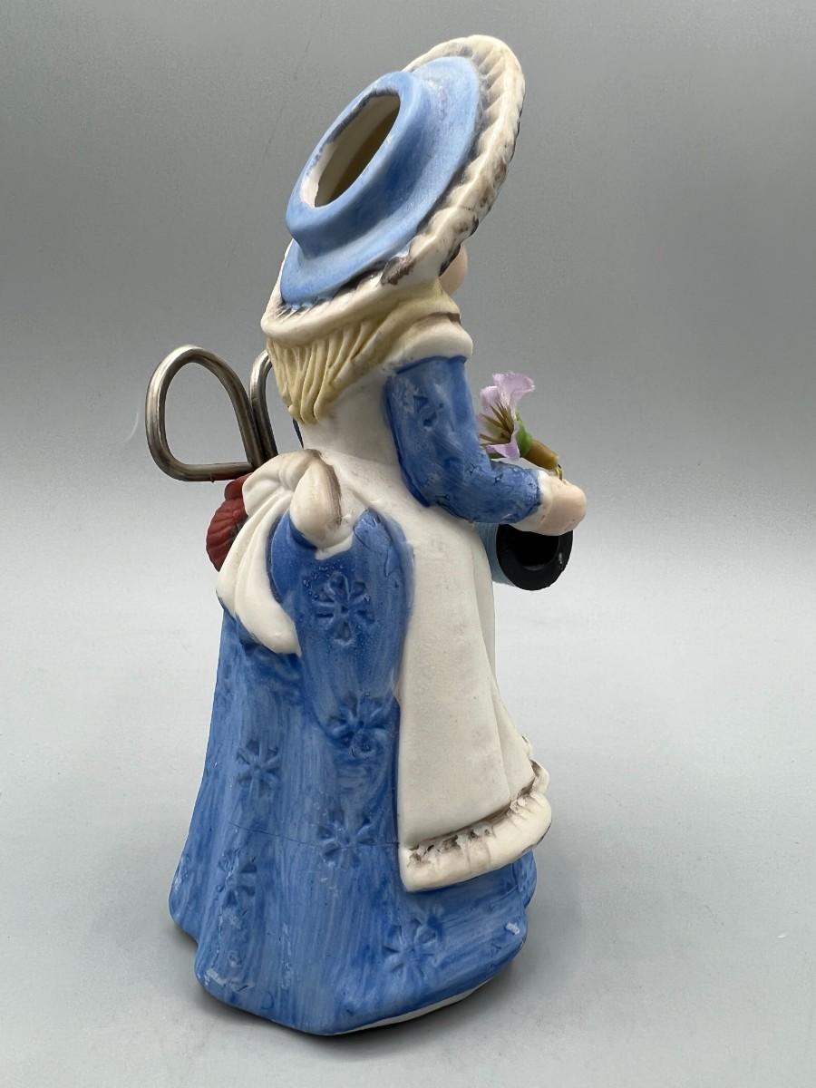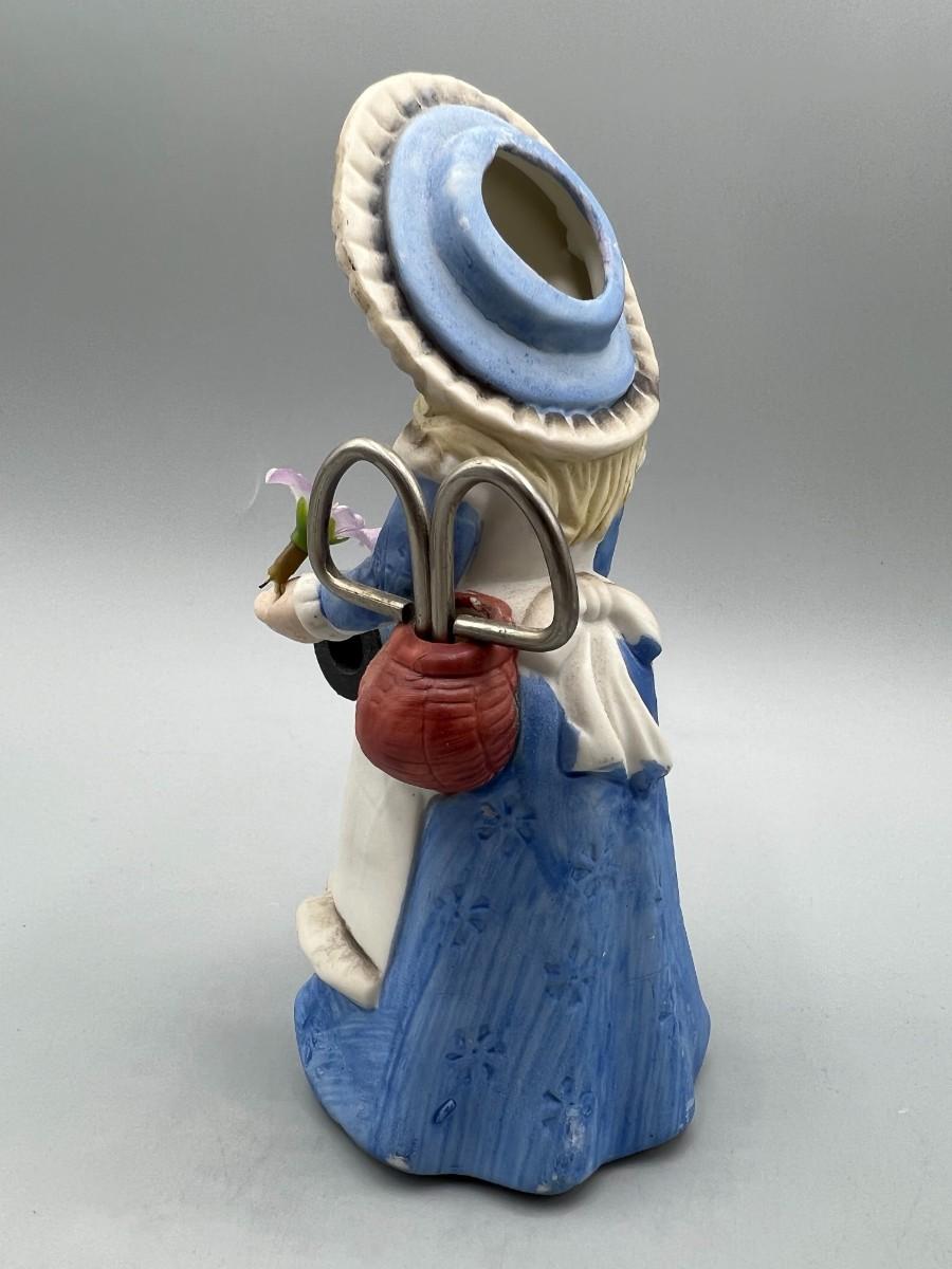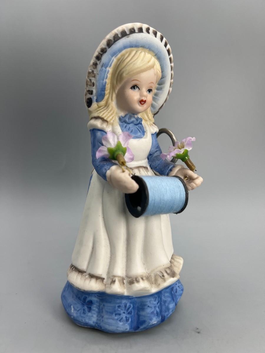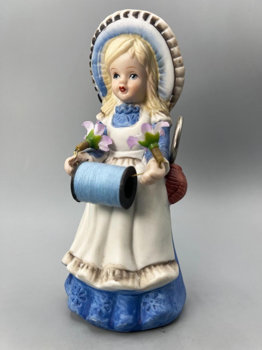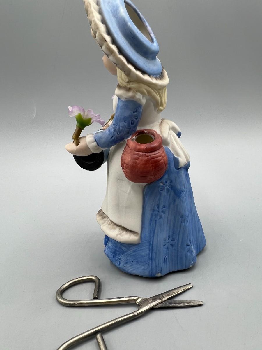 Vintage Price Products Sewing String Spool Holder & Scissors Flower Girl Ceramic Figurine