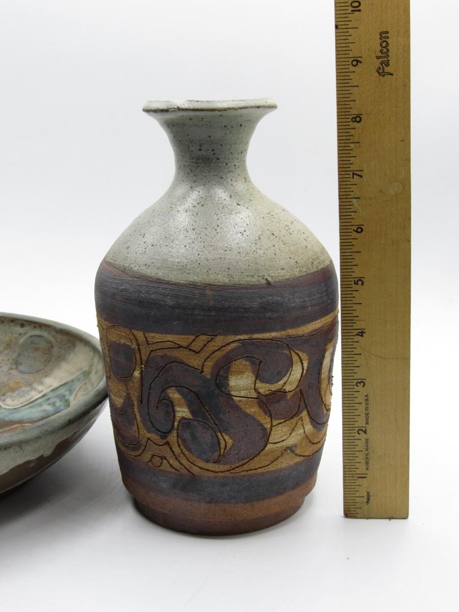 Vintage Primitive Handmade Pottery Art Pitcher Jug with Matching Washing Dish