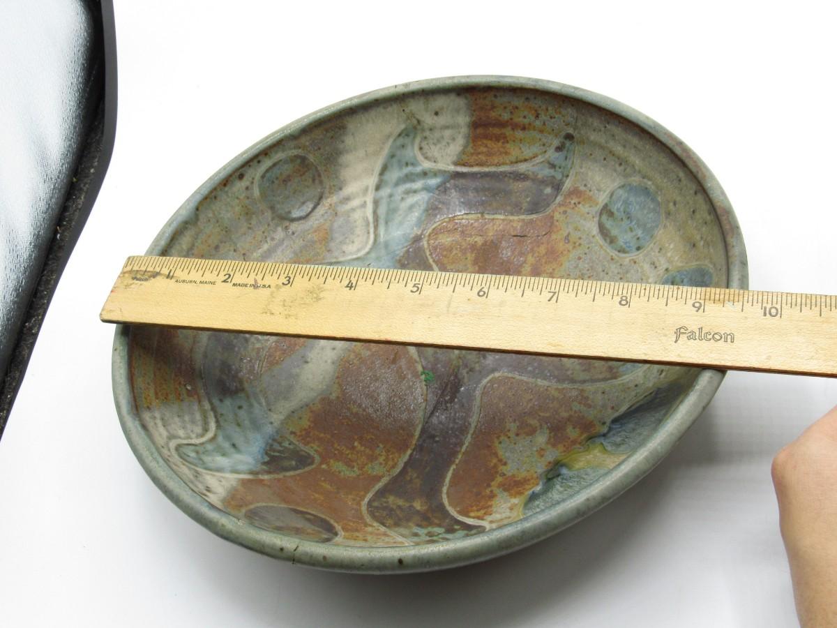 The dish has been cracked and repaired, there is a noticeable crack running along the center of the dish. The jug is in good condition. Check pictures for more details and sizing.