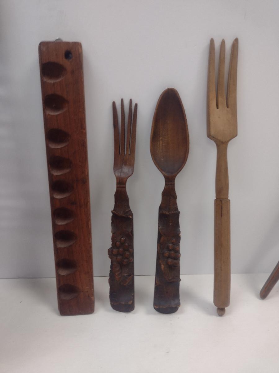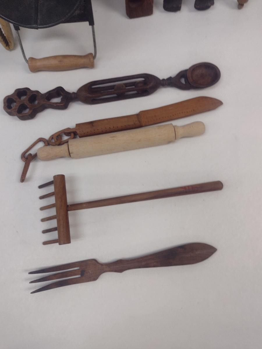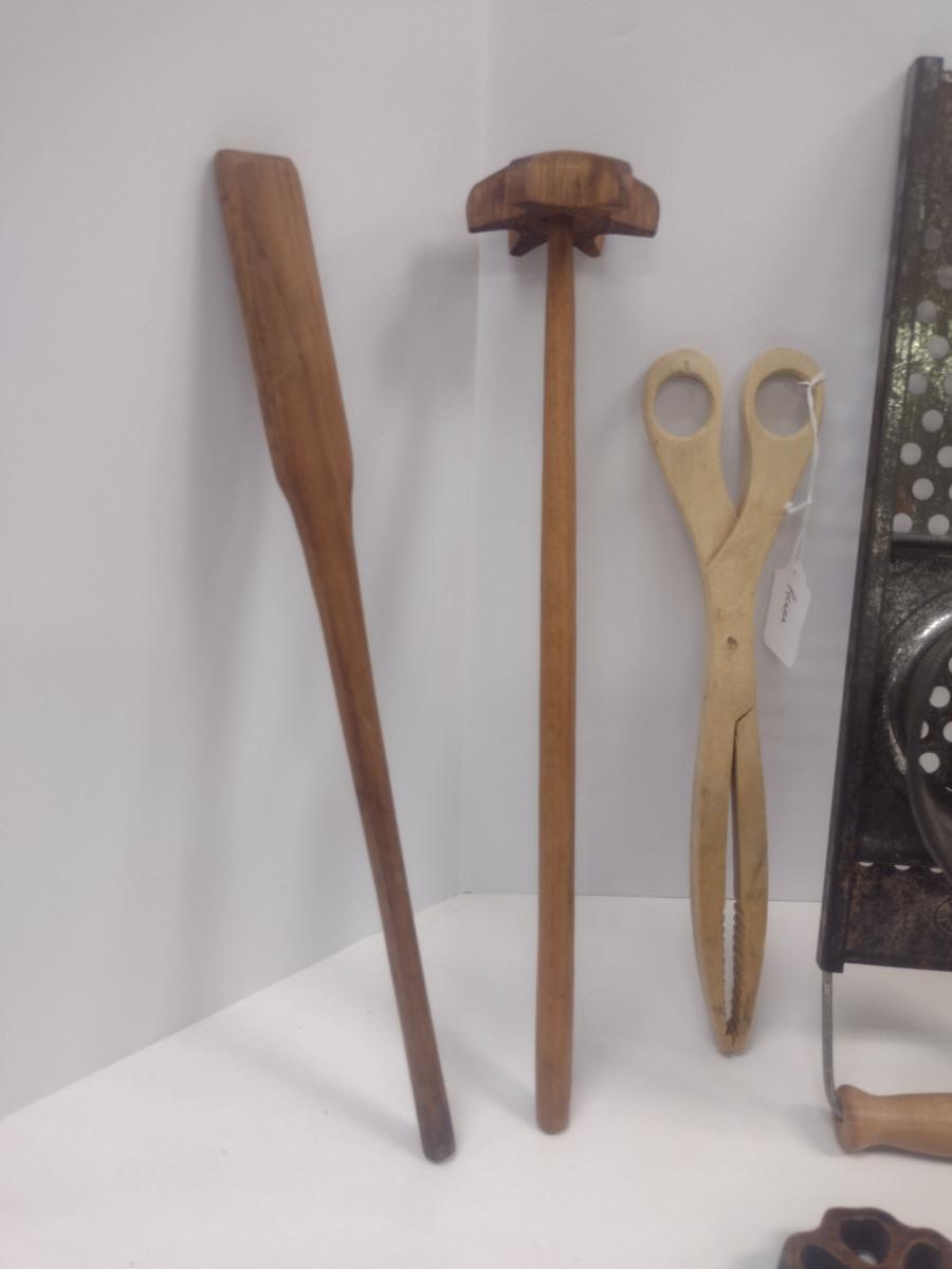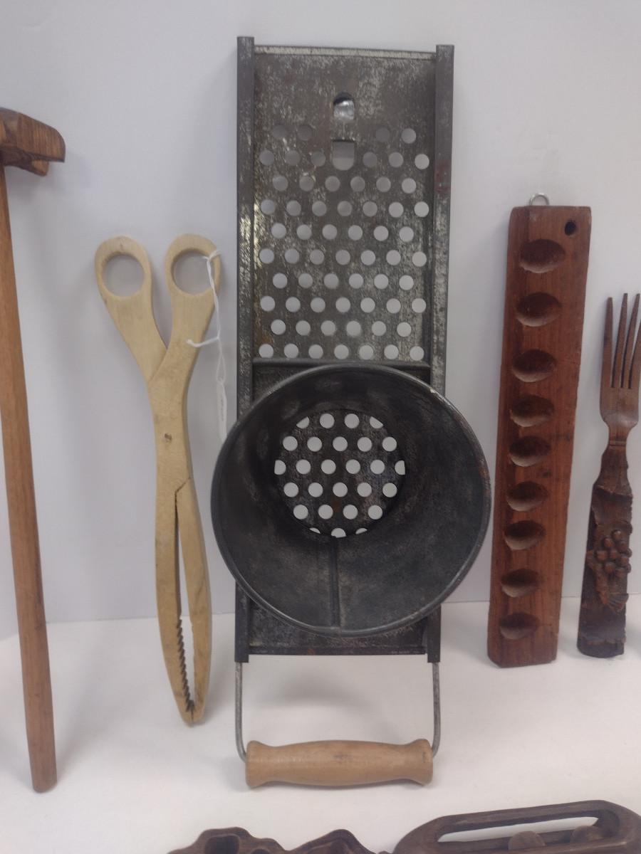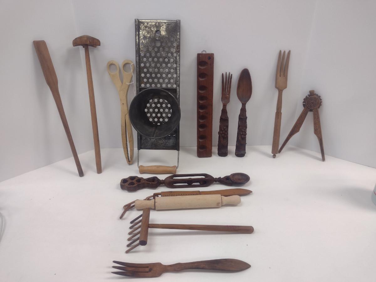 Vintage Primitive Kitchen Utensils- Spaetzle Maker, Forks, Spoons, etc.