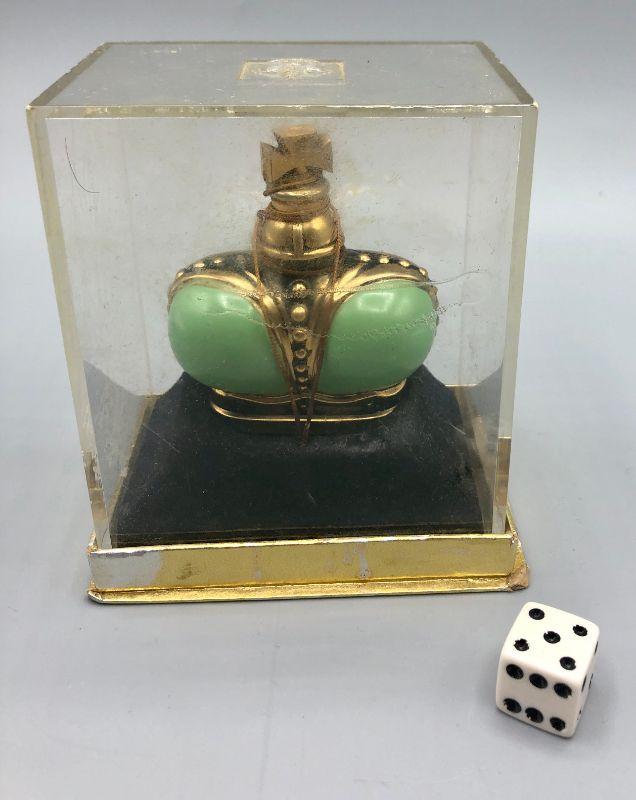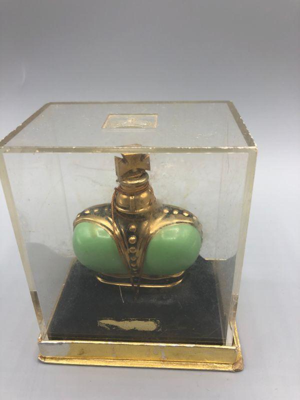 Vintage Prince Matchabelli Wind Song perfume. 1/4oz green and gold crown. Unused, in original see thru box. Box has wear from storage.