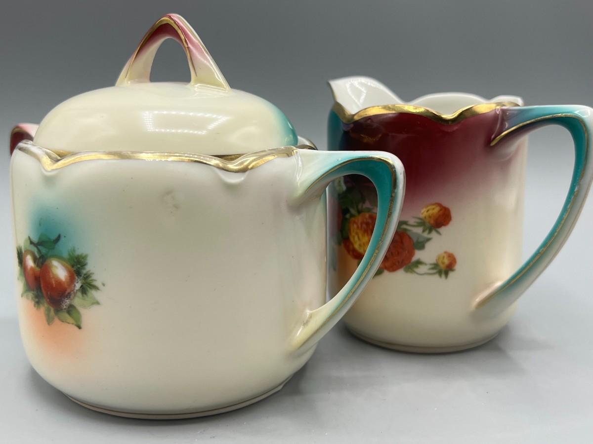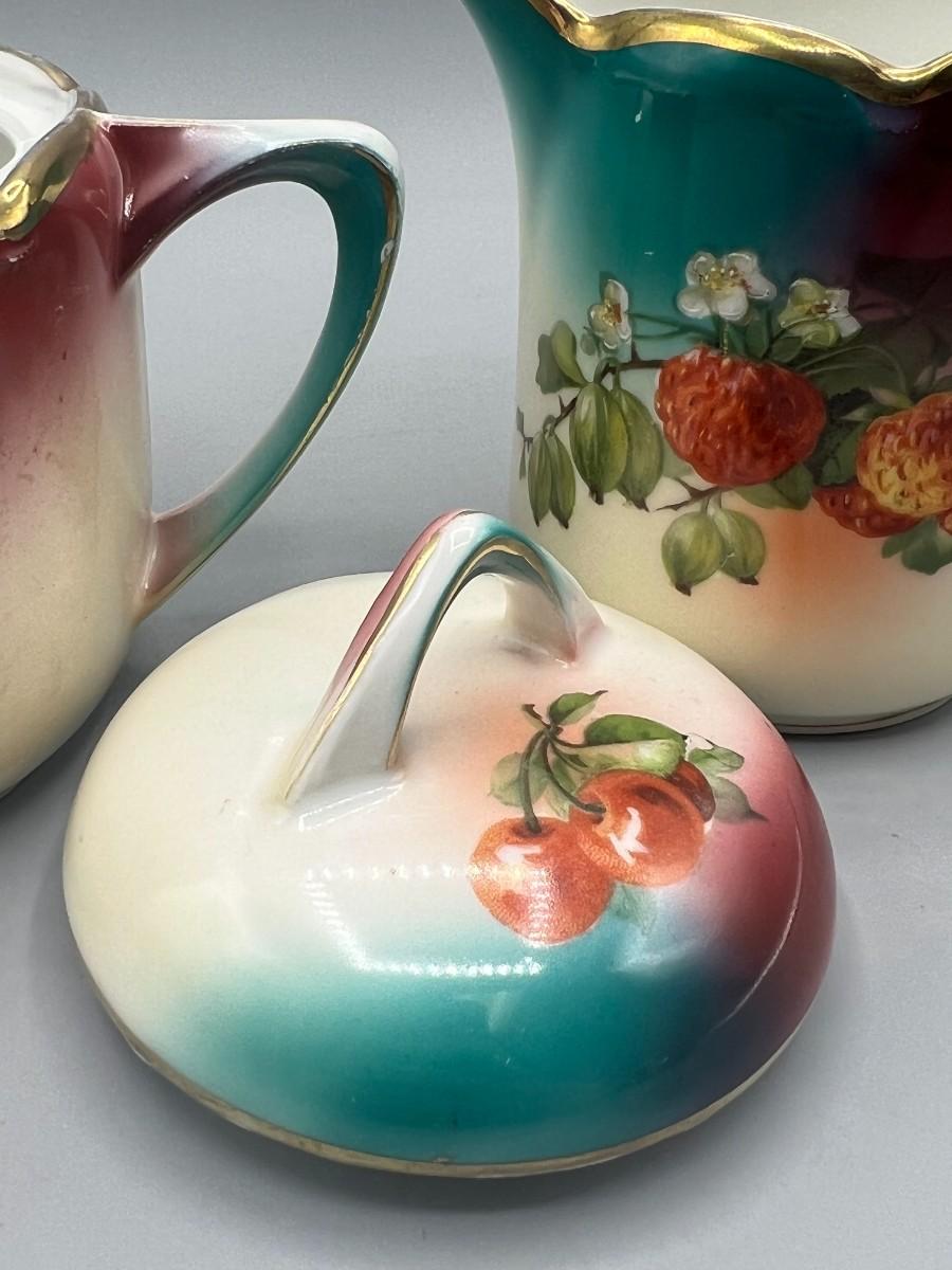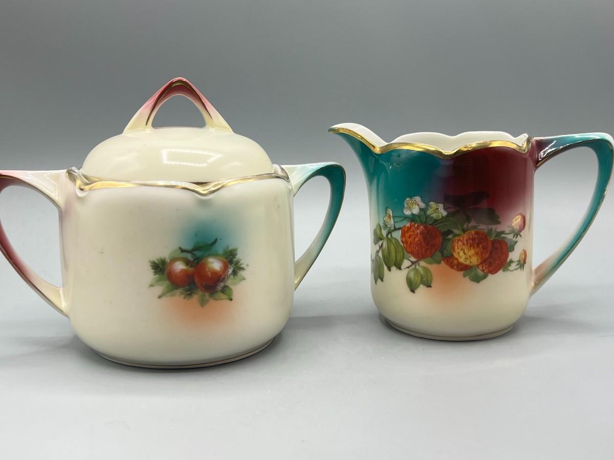 Vintage Prince Regent Bavaria Hand Painted Fruit Berry Design Sugar Bowll & Creamer
