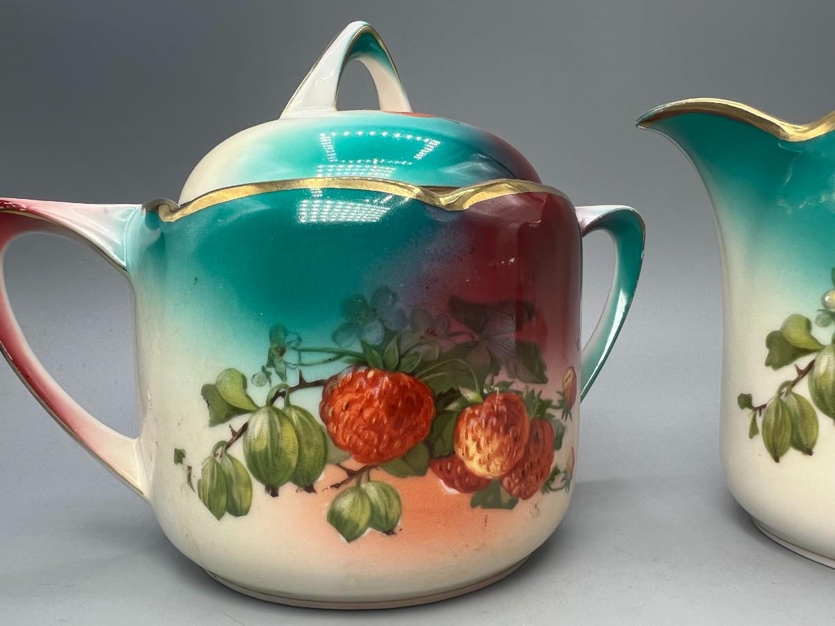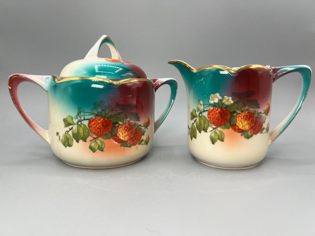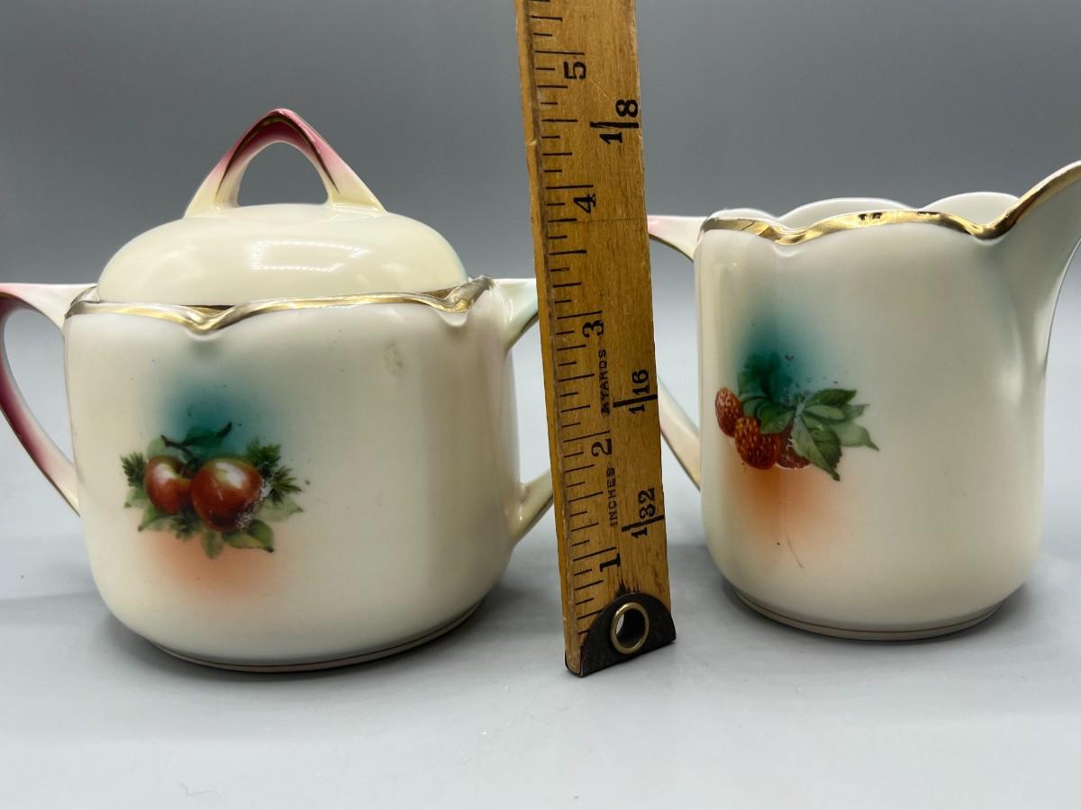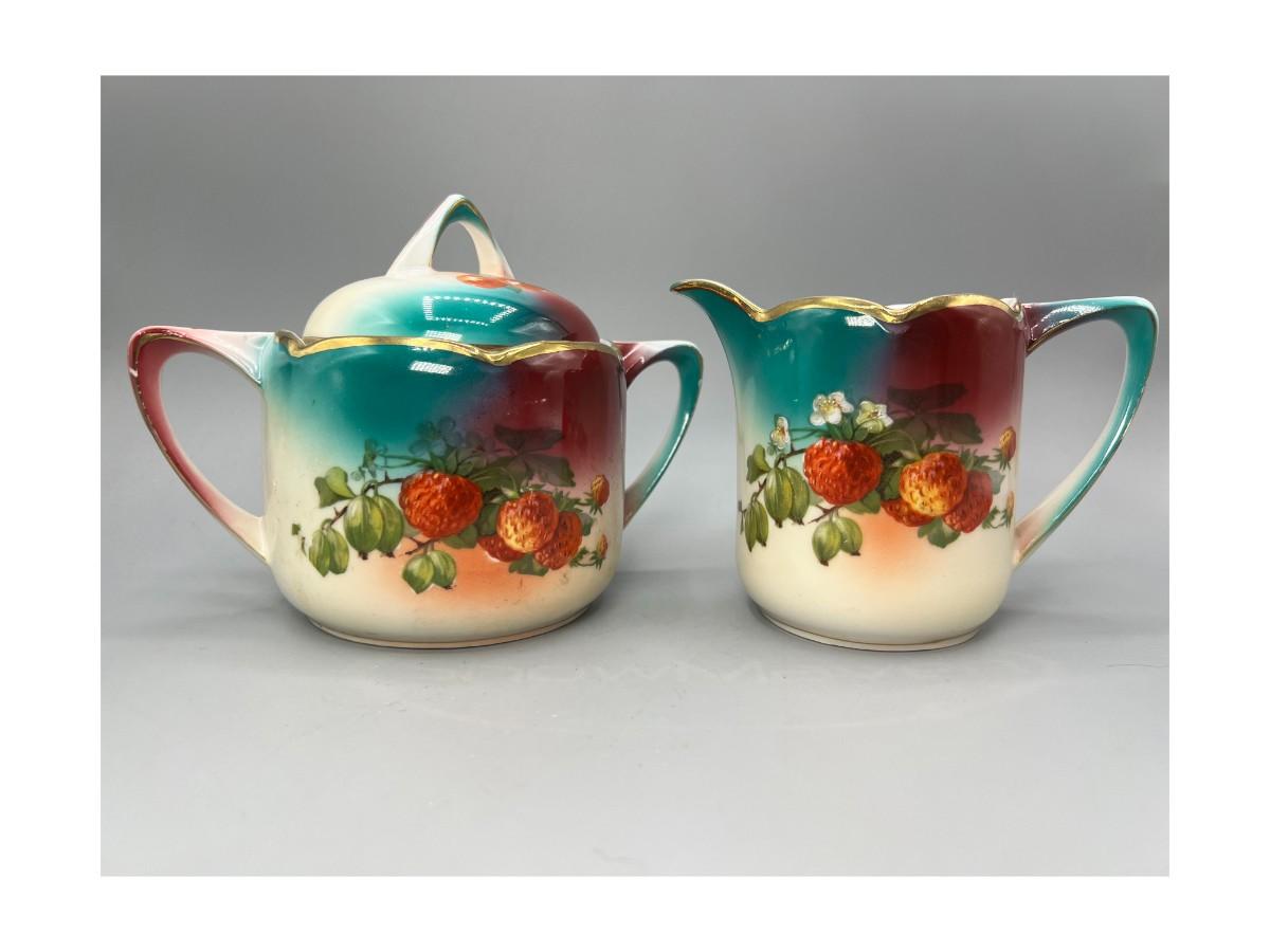 Vintage Prince Regent Bavaria Hand Painted Fruit Berry Design Sugar Bowll & Creamer