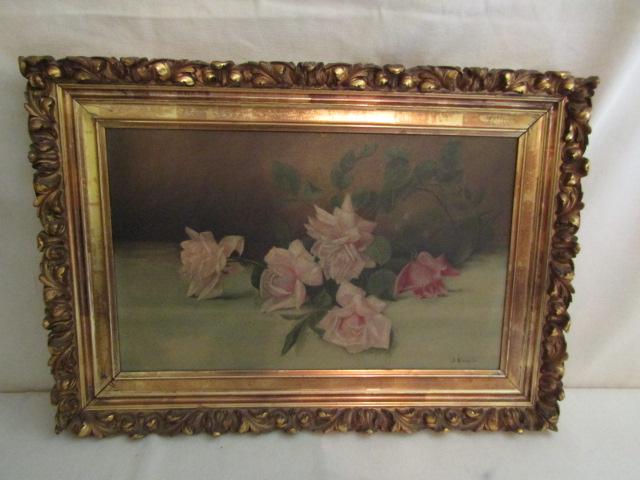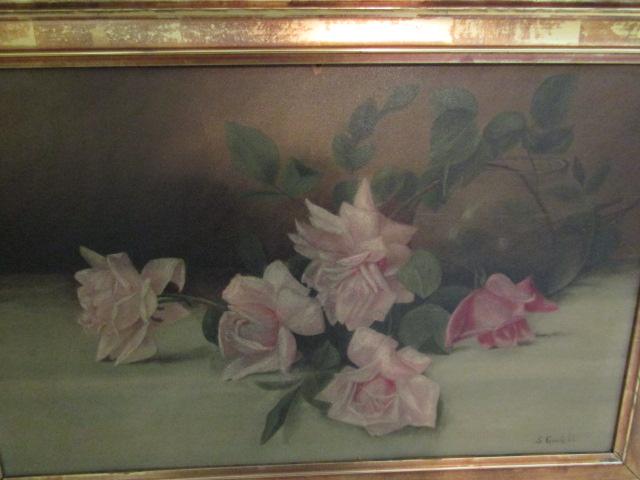Vintage Print Still Life S Goodell Set in Gilt Frame the frame has some minor damage as shown