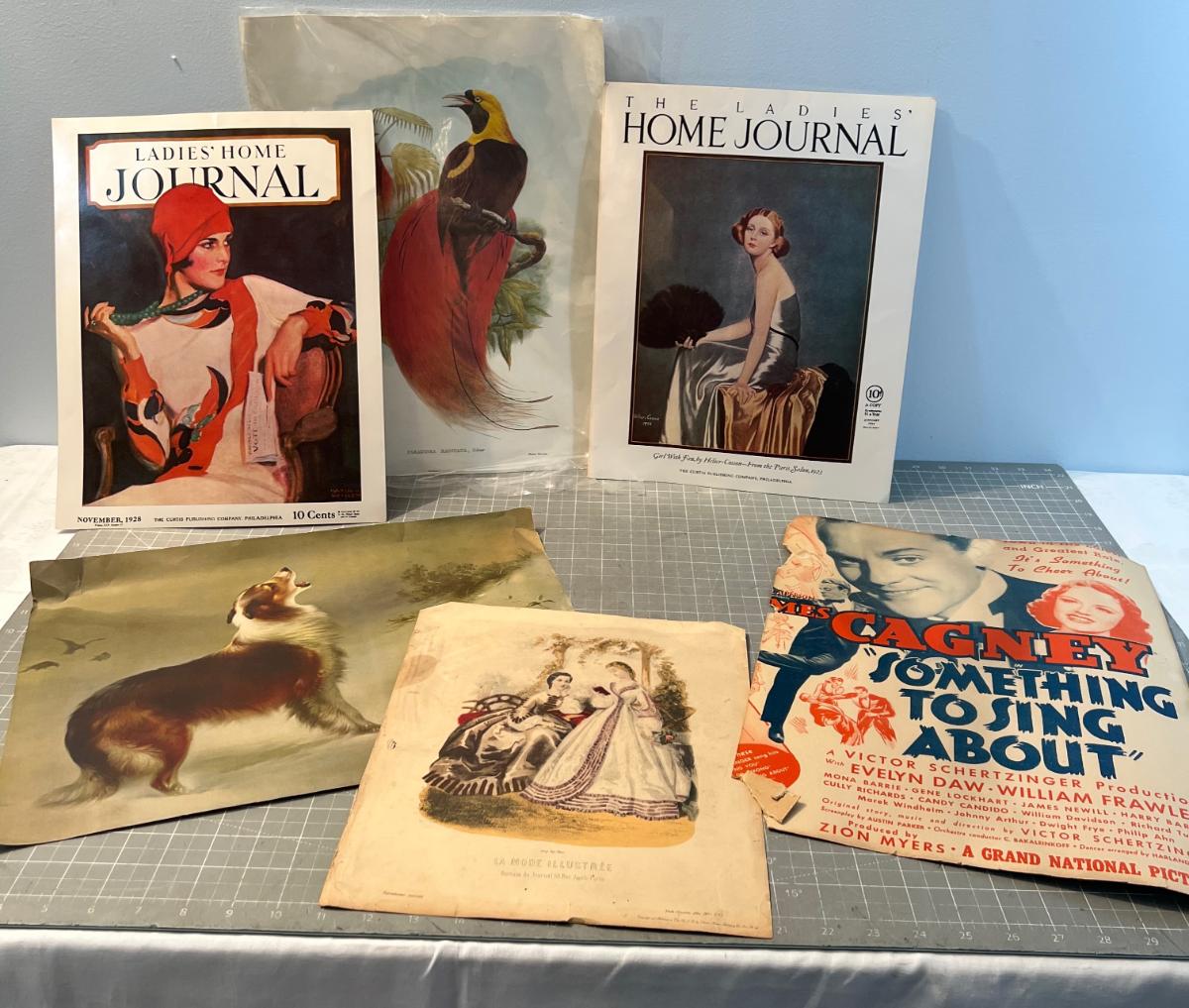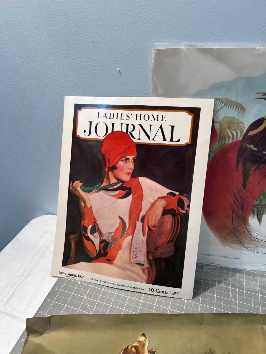 Suitable for framing. Fair Condition. Some wrinkles. Including the Ladies Home Journals.