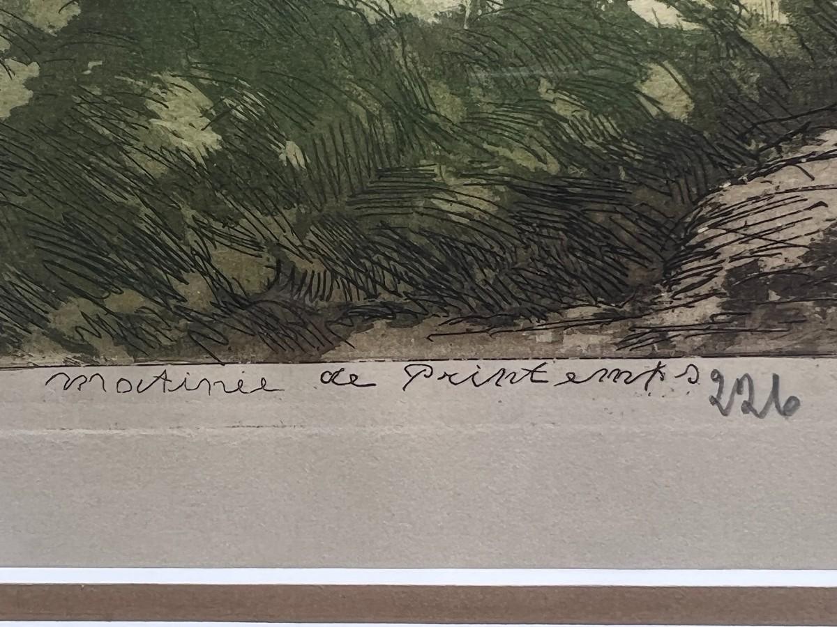 Vintage Professionally Framed Original Etching Artists Proof A Spring Morning Davril
