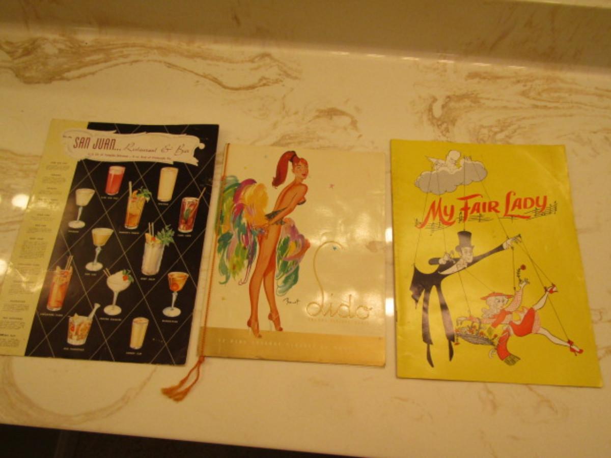 Vintage Programs and Menu- My Fair Lady and Lido Cabaret Burlesque Programs and Town and Country Motel Menu